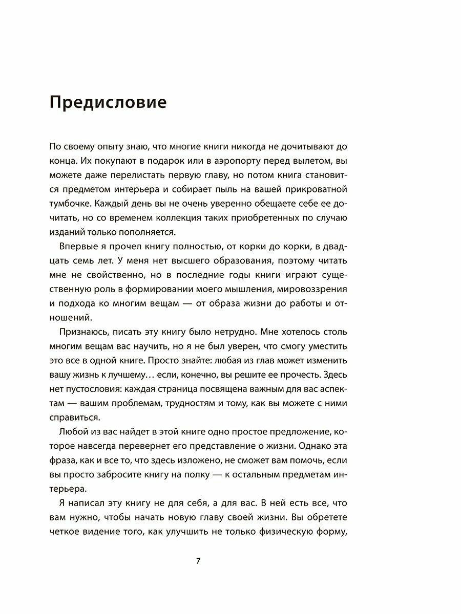 Один из самых знаменитых тренеров в мире вооружит вас всеми необходимыми инструментами для перестройки мышления, перевернет ваши представления о питании и тренировках и вернет контроль над собой. Вместо очередной новомодной диеты или краткосрочного плана тренировок он предложит вам обзавестись полезными привычками, чтобы вы смогли взять на себя ответственность за свою жизнь и делать ее лучше.