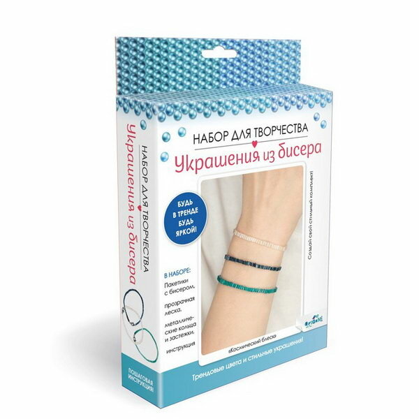 Плетение из бисера — это не просто увлекательное, но и очень полезное занятие. Оно отлично развивает творческое мышление и моторику пальцев. Сплетите очаровательные браслеты с помощью набора для творчества "Космический блеск" и они станут чудесным украшением и дополнят ваш образ.