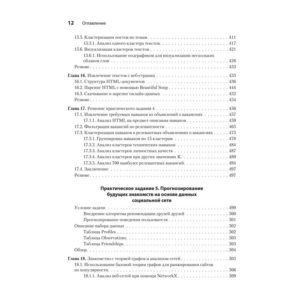 В проектах обработки и анализа данных много движущихся частей, и требуются практика и знания, чтобы создать гармоничную комбинацию кода, алгоритмов, наборов данных, форматов и визуальных представлений. Эта уникальная книга содержит описание пяти практических проектов, включая отслеживание вспышек заболеваний по заголовкам новостей, анализ социальных сетей и поиск закономерностей в данных о переходах по рекламным объявлениям.