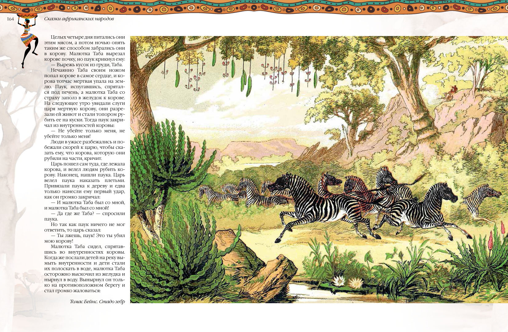 В пересказанных Николаем Куном африканских преданиях и легендах действуют могущественные колдуны и кровожадные людоеды, изворотливые шакалы и сильные добродушные слоны, грозные львы, жадные гиены, злобные змеи, находчивые зайцы и другие удивительные существа.