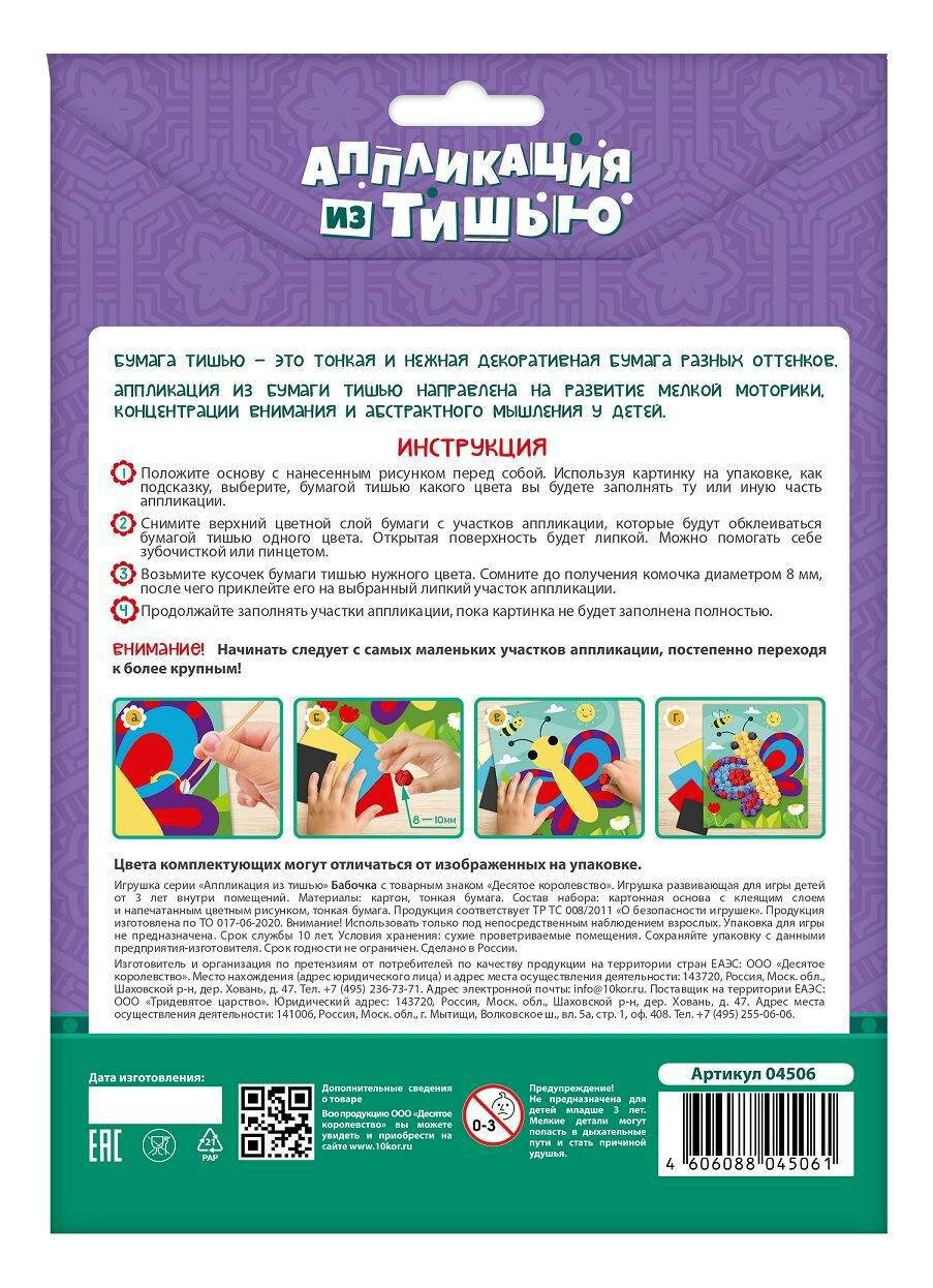 Набор для творчества Десятое королевство Аппликация из тишью Бабочка