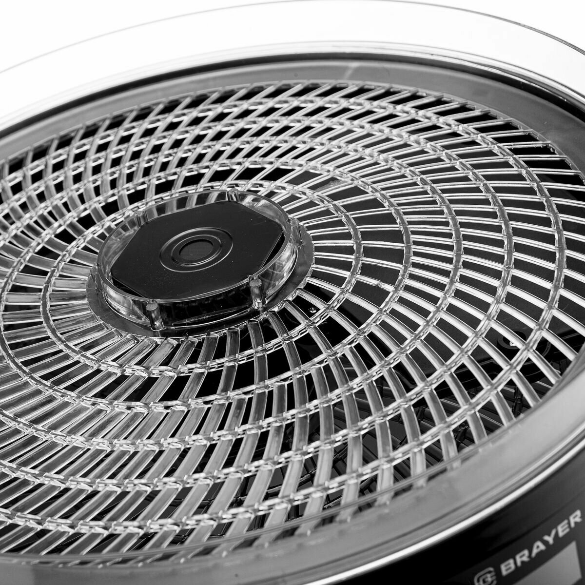 Система вращения поддонов обеспечивает оптимальную циркуляцию воздуха, что равномерно сушит все слои продуктов, исключая необходимость переворачивать их вручную. Сушилка оснащена защитой от перегрева, что обеспечивает безопасную и надежную работу устройства.