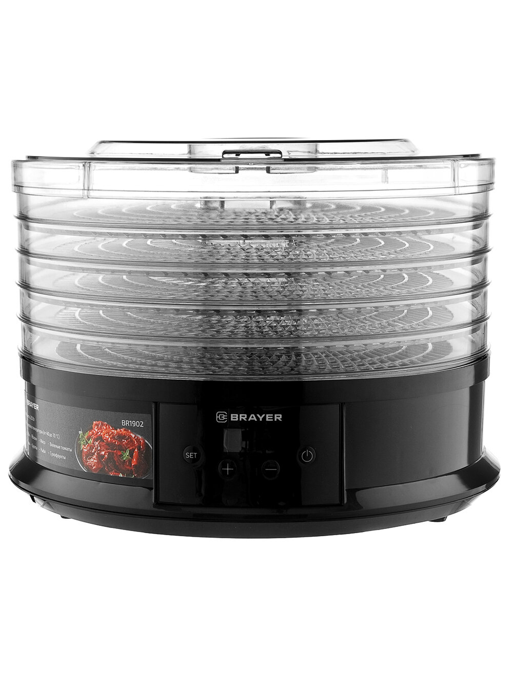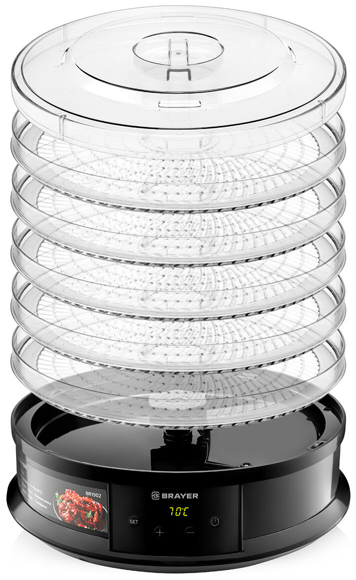 Регулировка температуры от 40 до 70 °С позволяет вам выбрать оптимальный режим сушки для разных видов продуктов. Таймер с функцией настройки от 1 до 48 часов позволяет точно контролировать процесс сушки и достичь желаемой консистенции.