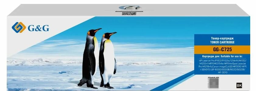 Тонер-картридж G&G для HP LJ P1102/1102w Pro M1130/1212 Canon LBP6018 (1600 стр) C725 3484B0 GG-C725