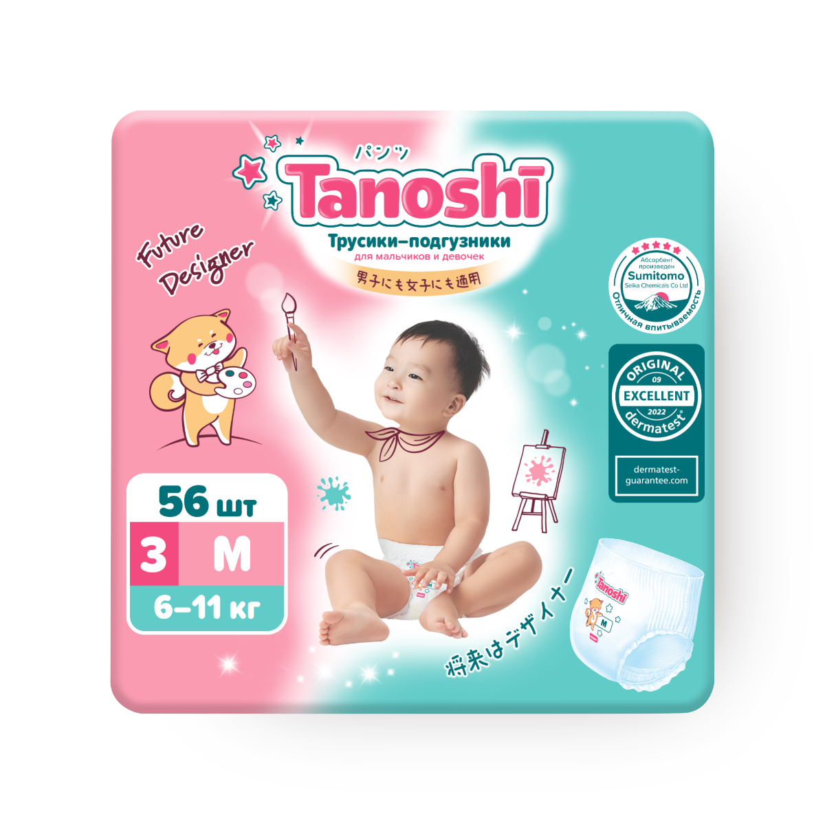 Трусики-подгузники для детей Tanoshi M 6-11 кг 56 шт Трусики-подгузники для детей, размер M 6-11 кг, 56 шт. (размер: 3/M (4-11 кг))