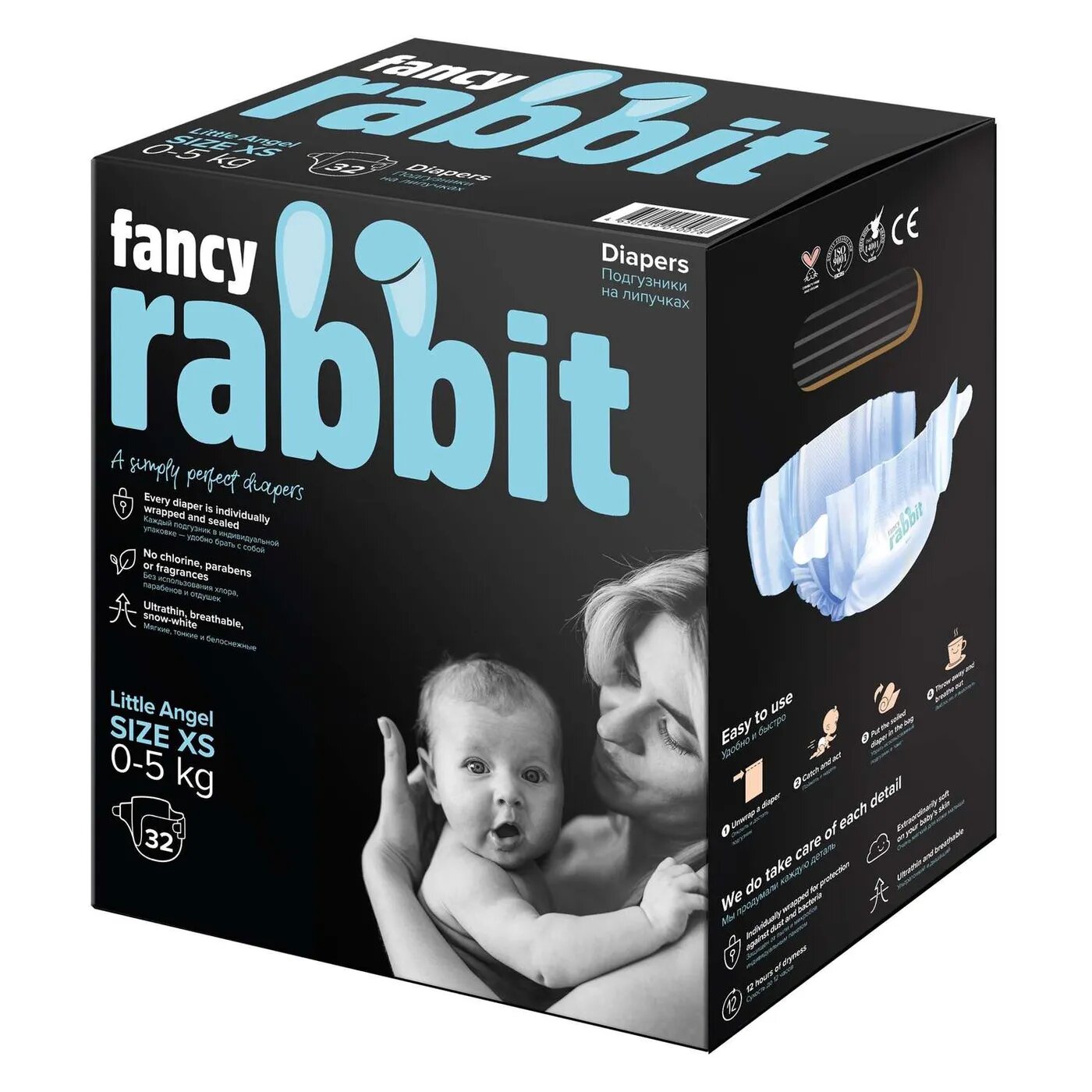 Fancy Rabbit -это ультратонкие подгузники, незаметные под одеждой, нежные, как кашемир. Они не просто тоньше других, они впитывают больше - моментально отводят влагу и удерживают ее до 12 часов. Сочетание дышащих материалов, японского абсорбента и конструктивных особенностей дают малышу новый уровень комфорта. Кожа ребенка не страдает от типичных проблем, связанных с использованием подгузника.Fancy Rabbit создан без отдушек и хлора. В составе нет парабенов, фталатов, латекса, тяжелых металлов.В красивой, эффектной коробке, очень мягкие на ощупь подгузники Fancy Rabbit не имеют постороннего запаха.Каждый подгузник в индивидуальной упаковке. Очень удобно брать с собой на прогулки, в гости, в кафе. Индивидуальная упаковка каждого подгузника дает дополнительную защиту и позволяет утилизировать его быстро, просто, машинально в тот же пакет.одна отличительная особенность : подгузники Fancy Rabbit прошиты изнутри и никогда жидкость не собирается в комок, нет эффекта отвисшей попки малыша.Fancy Rabbit придуманы мамой для своего ребенка, поэтому учтены все мельчайшие детали: безопасности и удобства, что делает подгузник Fancy Rabbit лучшим на сегодняшний день.Fancy Rabbit-отличное начало!