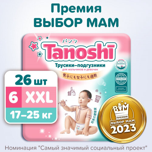 Подгузники-трусики для детей Tanoshi/Таноши 17-25кг 26шт р.XXL Трусики-подгузники для детей, размер XXL 17-25 кг, 26 шт. (размер: 6/XXL (15+ кг))