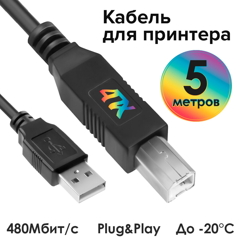 Кабель 1.8m USB 2.0, AM/BM, черный