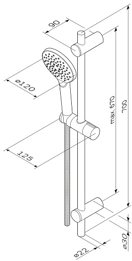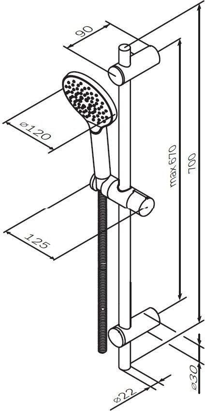 - Высота душевой штанги: 700 мм.