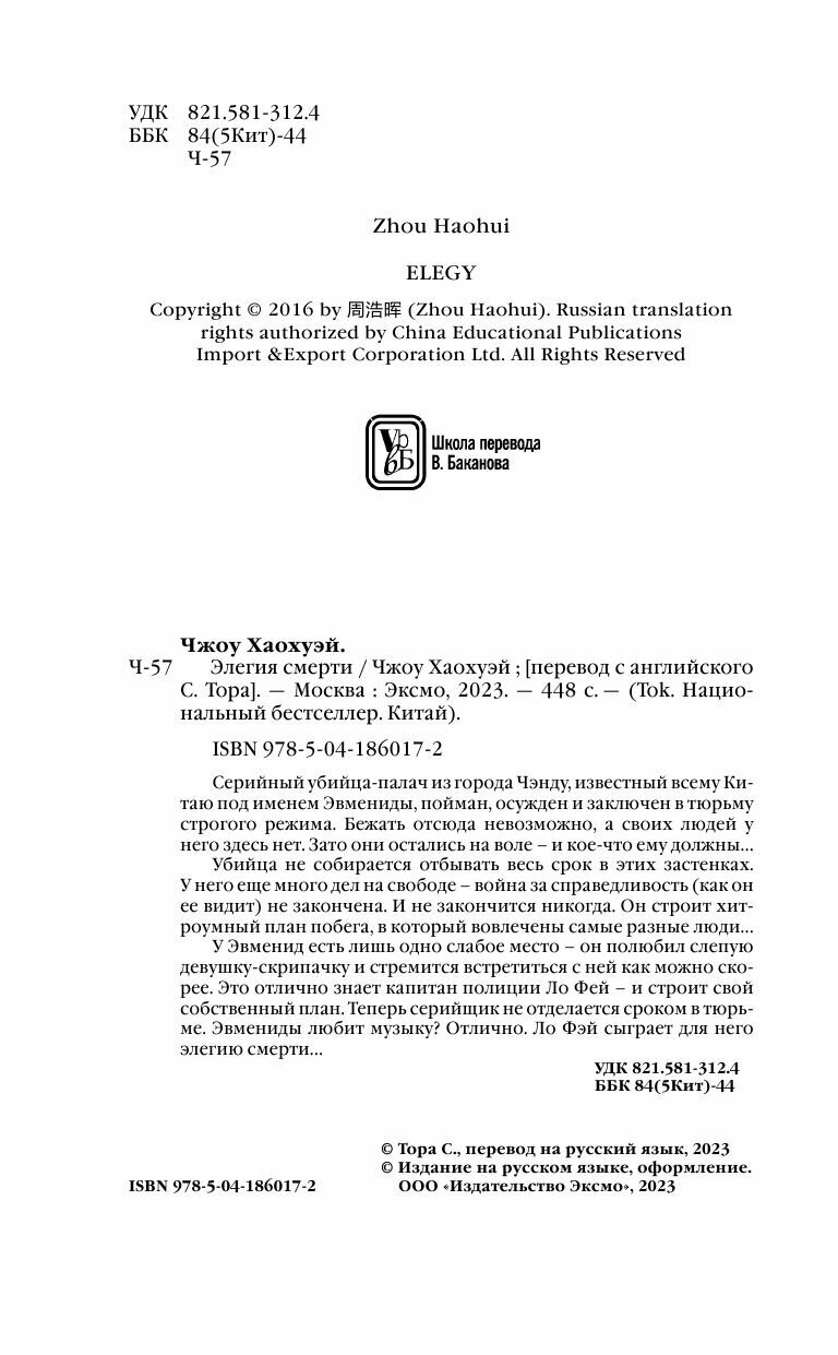 Книга: Элегия смерти (Хаохуэй Чжоу); Эксмо, Inspiria, Редакция 1, 2023