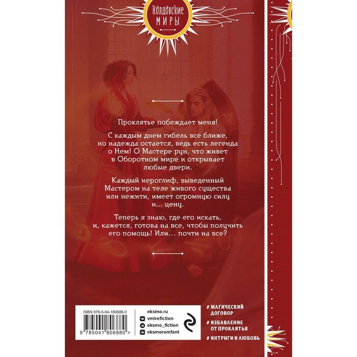 Эта потрясающая книга с необычным сюжетом, интригами, проклятием, с которым девушка пришла искать помощь в оборотном мире к мастеру рун и влюбилась, хотя честно обещала сама себе, что сможет продержаться год до окончательного решения своей маленькой проблемы.
