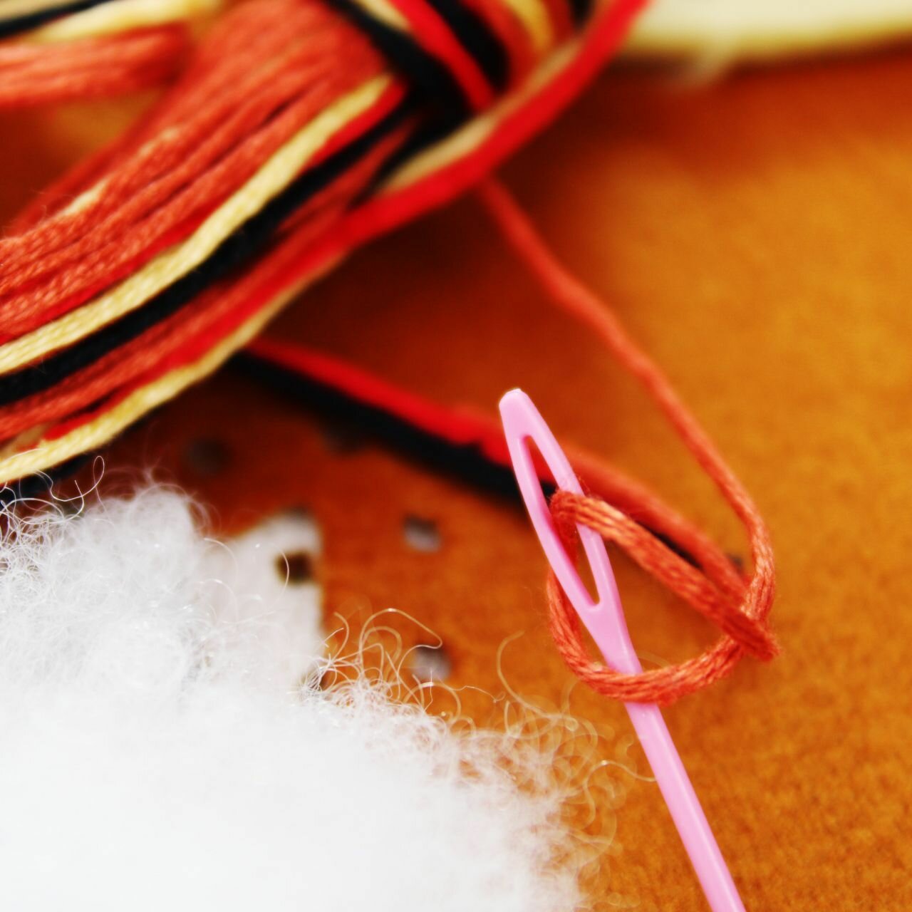 | Состав набора | детали тела фигурки из трикотажной, бархатистой ткани с небольшим меховым ворсом – 2 шт. (16,5 х 24 см), детали из фетра с перфорированными отверстиями – 11 шт., заготовка для комбинезона из текстильного материала (неопрен) – 1 шт., нитки мулине (черного, красного, бежевого, рыжего цветов), безопасная пластиковая иголка – 1 шт. (5 см), наполнитель – 1 упаковка |
