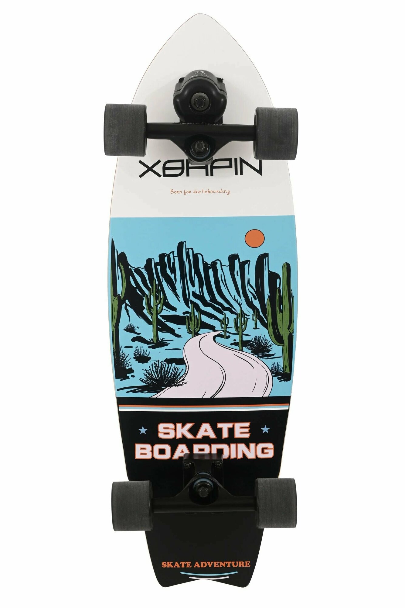 Сёрфскейт предлагает совершенно иной способ катания по сравнению с традиционными лонгбордами. Движения на сёрфскейте очень похожи на сёрфинг, где райдер набирает скорость за счёт работы плечевого пояса и переноса центра тяжести от носка к пятке – пампинга. Эта техника сильно отличается от лонгборда и скейтборда, где для набора скорости нужно отталкиваться ногой от поверхности. Подвески сёрфскейта очень маневренные, позволяют совершать резкие повороты в любую сторону. . Размер деки (7 слоев клена) 33 на 9,5 дюймов (80*24 см). Полиуретановые колеса размером 65 на 45 мм, жесткость - 78А, подшипники - ABEC-9. Прочные алюминиевые подвеска шириной 6,25" обеспечат надежное катание. Для любителей лонгборда, сап бордов, серфинга, скейтбординга и других активных видов спорта.