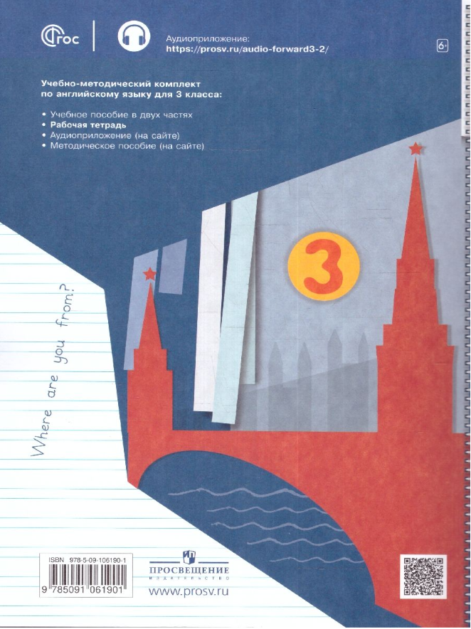 Рабочая тетрадь серии "Forward" входит в учебно-методический комплект для 3 класса и дополняет учебное пособие системой заданий, обеспечивающих комплексное развитие навыков письменной речи, аудирования, чтения и говорения. Включает задания, выполняемые при помощи учителя и самостоятельно, а также проекты, предназначенные для организации внеурочной деятельности, и проверочные тесты.