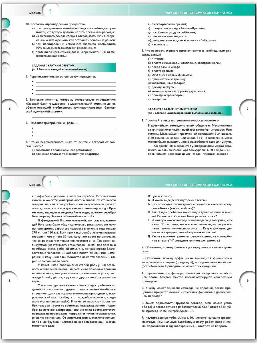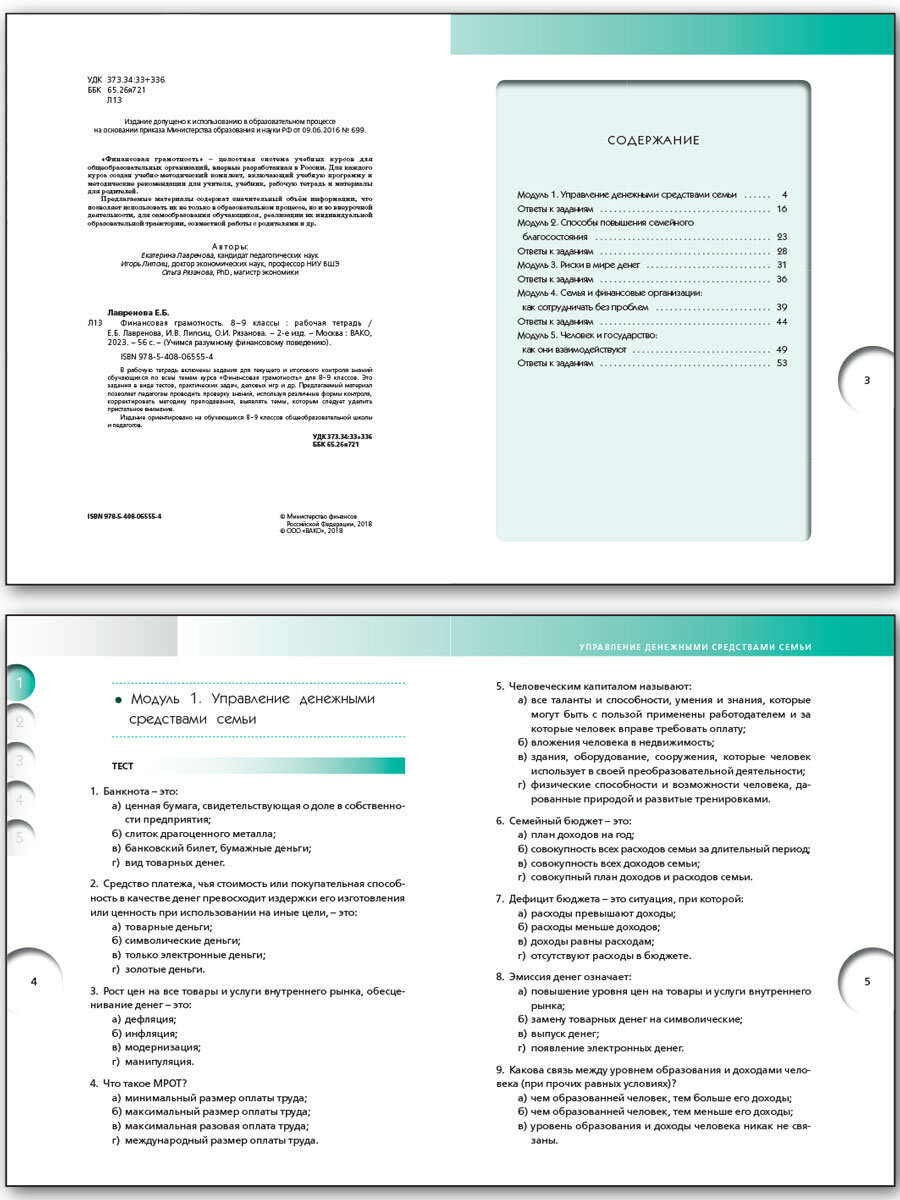В рабочую тетрадь включены задания для текущего и итогового контроля знаний обучающихся по всем темам курса "Финансовая грамотность" для 8-9 классов. Это задания в виде тестов, практических задач, деловых игр и др. Предлагаемый материал позволяет педагогам проводить проверку знаний, используя различные формы контроля, корректировать методику преподавания, выявлять темы, которым следует уделить пристальное внимание.