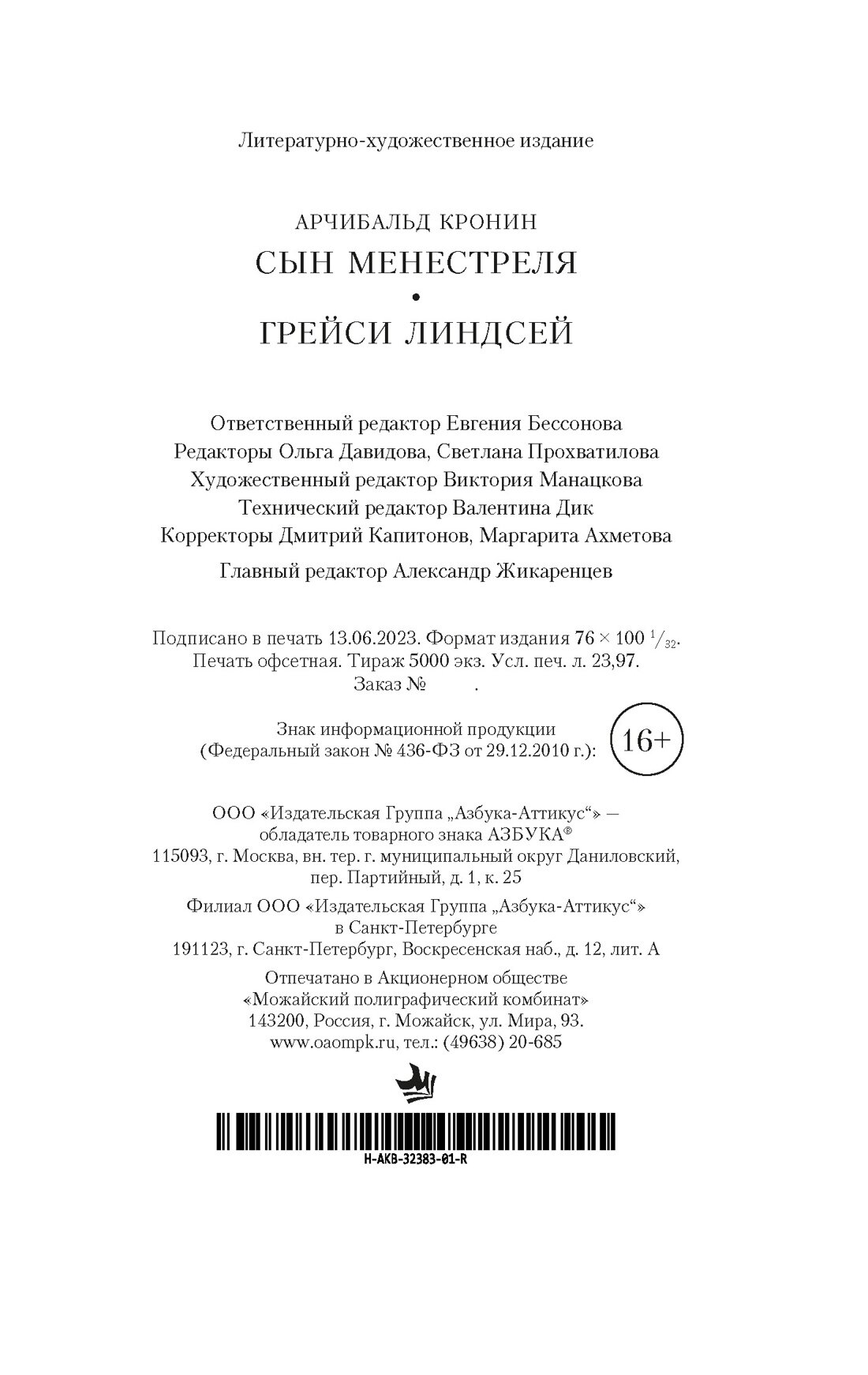 Сын менестреля. Грейси Линдсей (Кронин Арчибалд); Азбука Издательство, 2023