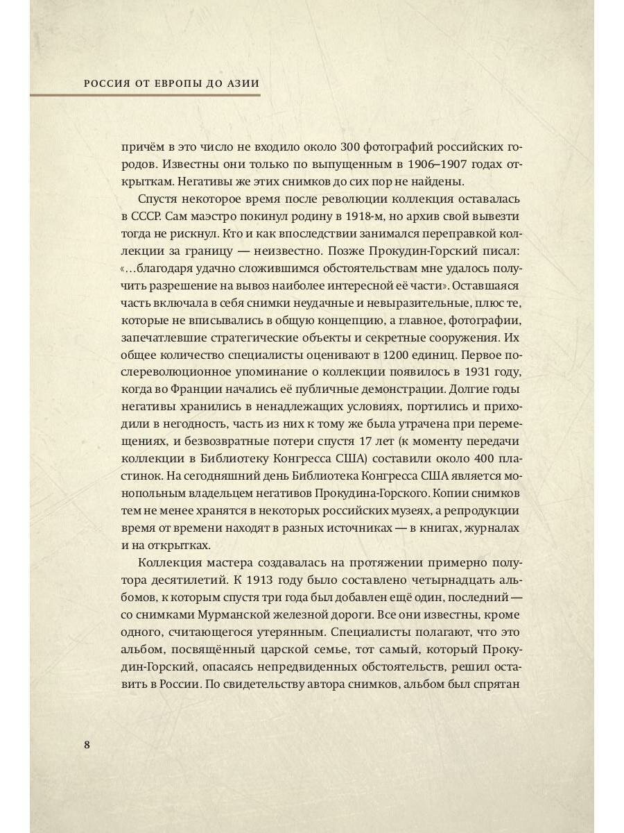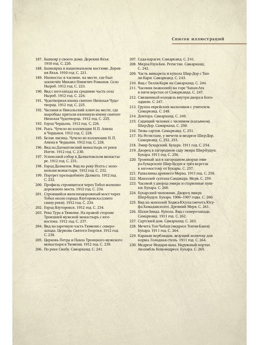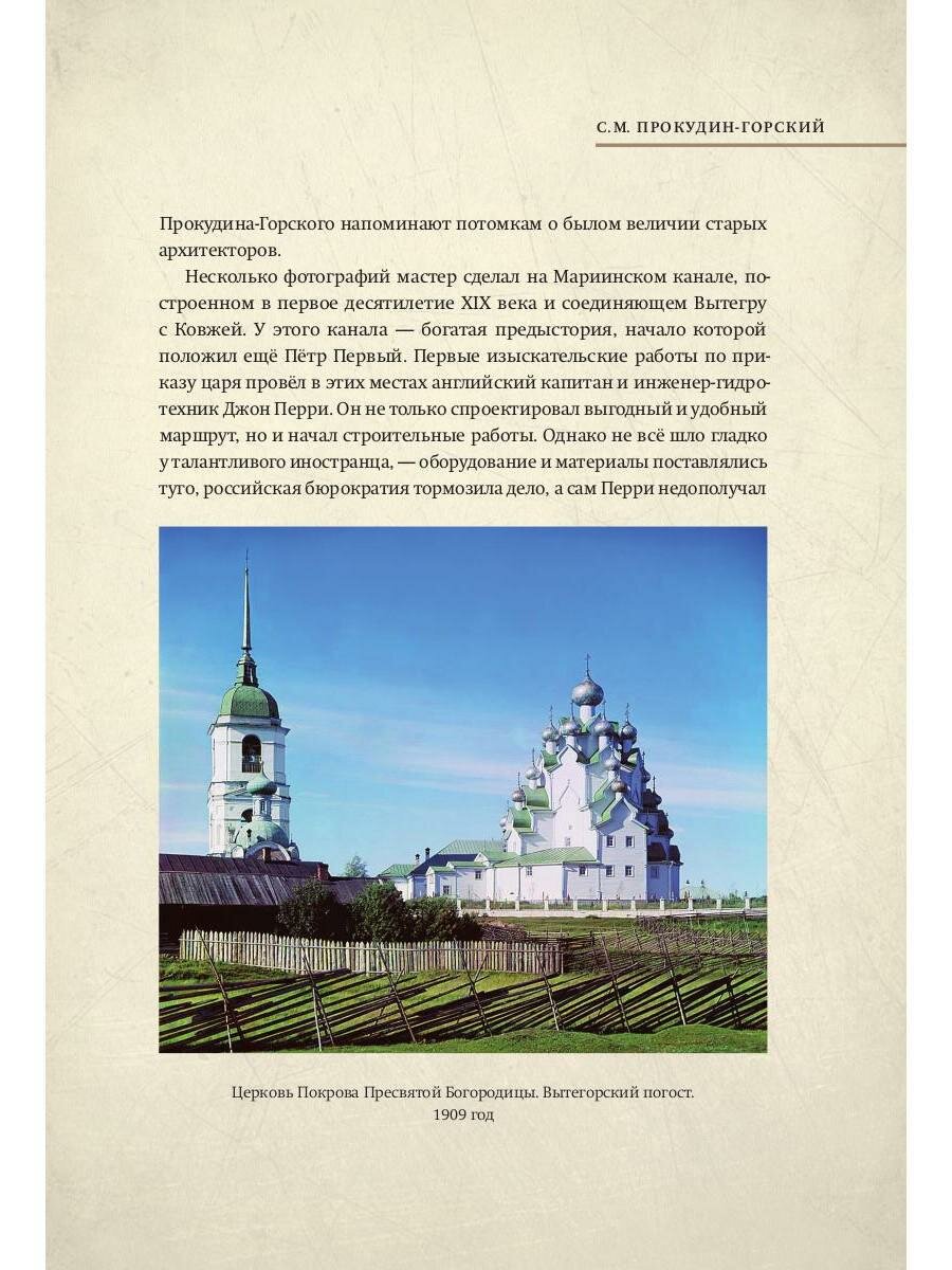 Книга-альбом о широкой деятельности Прокудина-Горского на обширнейшей территории Российской империи, рассказывает о местах, где он работал, о его открытиях и о сохранённом на его снимках духовном и материальном богатстве, которое в настоящее время, увы, утрачено. Текст Владимира Лидского.