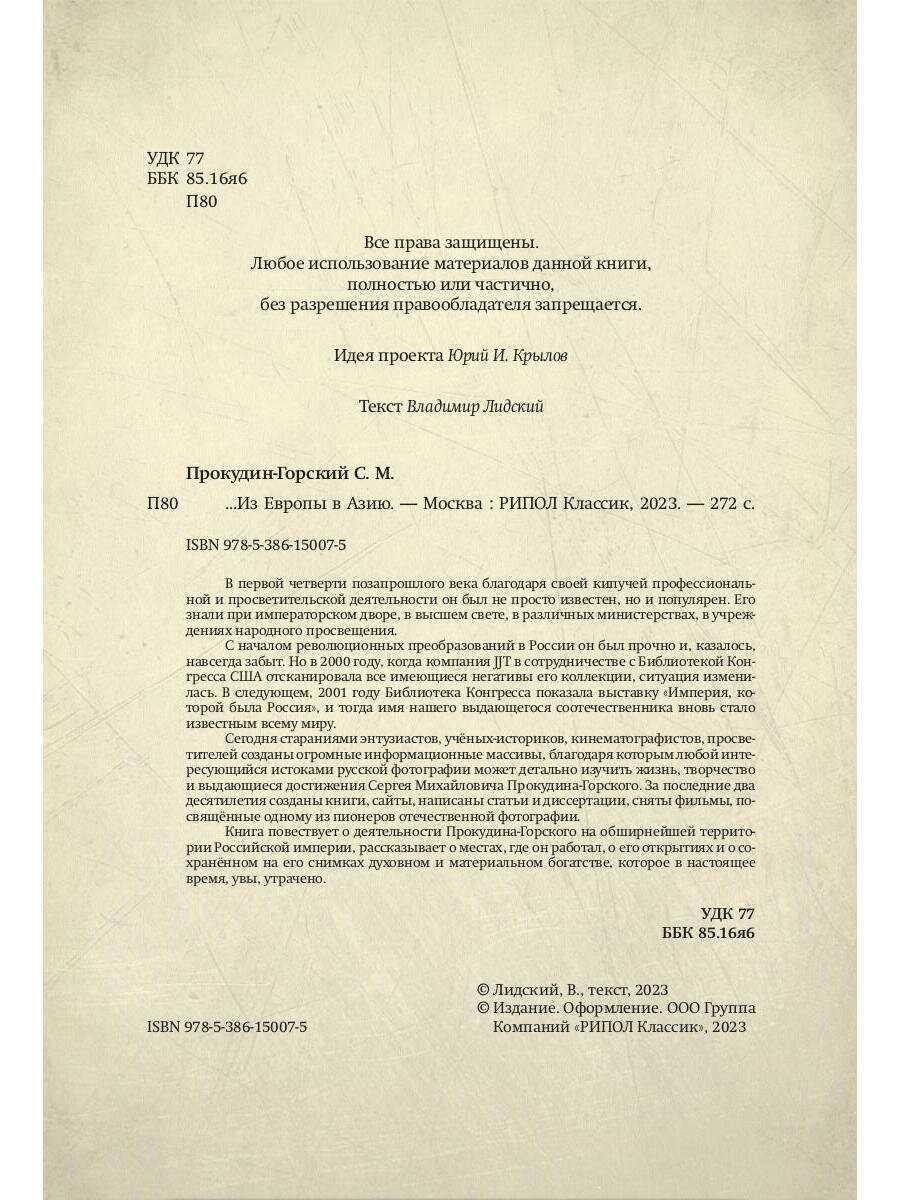 Книга: Из Европы в Азию (Прокудин-Горский Сергей Михайлович, Лидский Владимир Леонидович); Рипол, 2023
