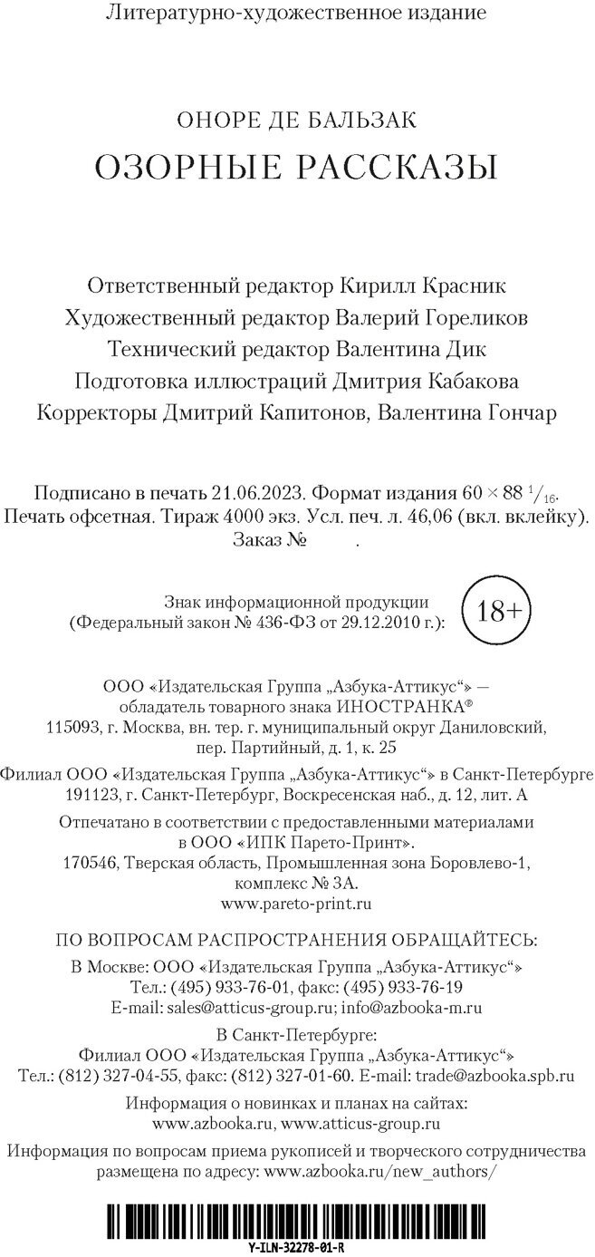 Книга: Озорные рассказы (де Бальзак Оноре); Иностранка, 2023