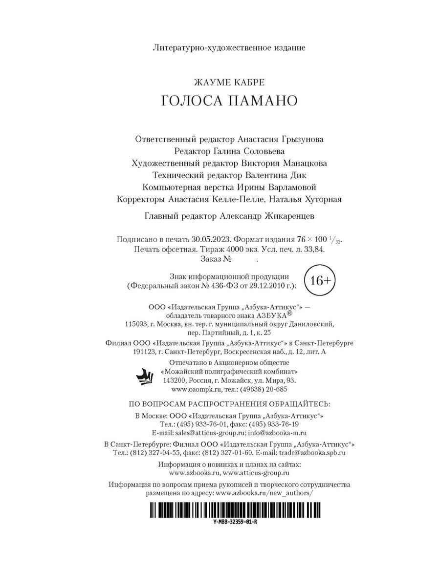 Книга: Голоса Памано (Кабре Жауме); Азбука, 2023