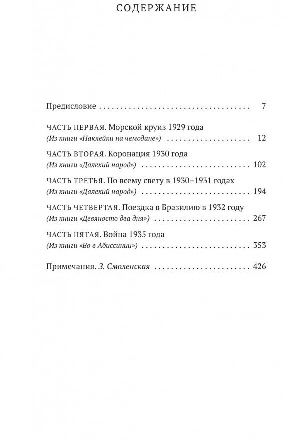 Собрание путевой прозы прославленного классика британской литературы Ивлина Во, составленное им самим после Второй мировой войны на основе предвоенных рассказов о своих многочисленных странствиях по миру — миру, который за какие-то десять лет изменился неузнаваемо. «Сам я никогда не метил в великие путешественники, — пишет Ивлин Во. — Меня устраивала роль типичного представителя молодежи своего времени; поездки воспринимались нами как нечто само собой разумеющееся. Отрадно сознавать, что наши путешествия пришлись на то время, когда шагалось нам легко». И размах этих путешествий впечатляет до сих пор: Средиземноморье и Ближний Восток; Абиссиния — где коронуется на императорский трон Хайле Селассие, будущий мессия ямайской религии растафари; Африка — через весь континент; Бразилия и Британская Гвиана; снова Абиссиния — где вот-вот начнется Итало-эфиопская война… И всюду, куда бы ни заносила его судьба, Ивлин Во неизменно демонстрирует свое фирменное чутье на все нелепое и смешное, филигранную психологическую точность, мастерское владение словом. Не зря он говорил, что иногда можно подумать, будто весь мир населен его персонажами…