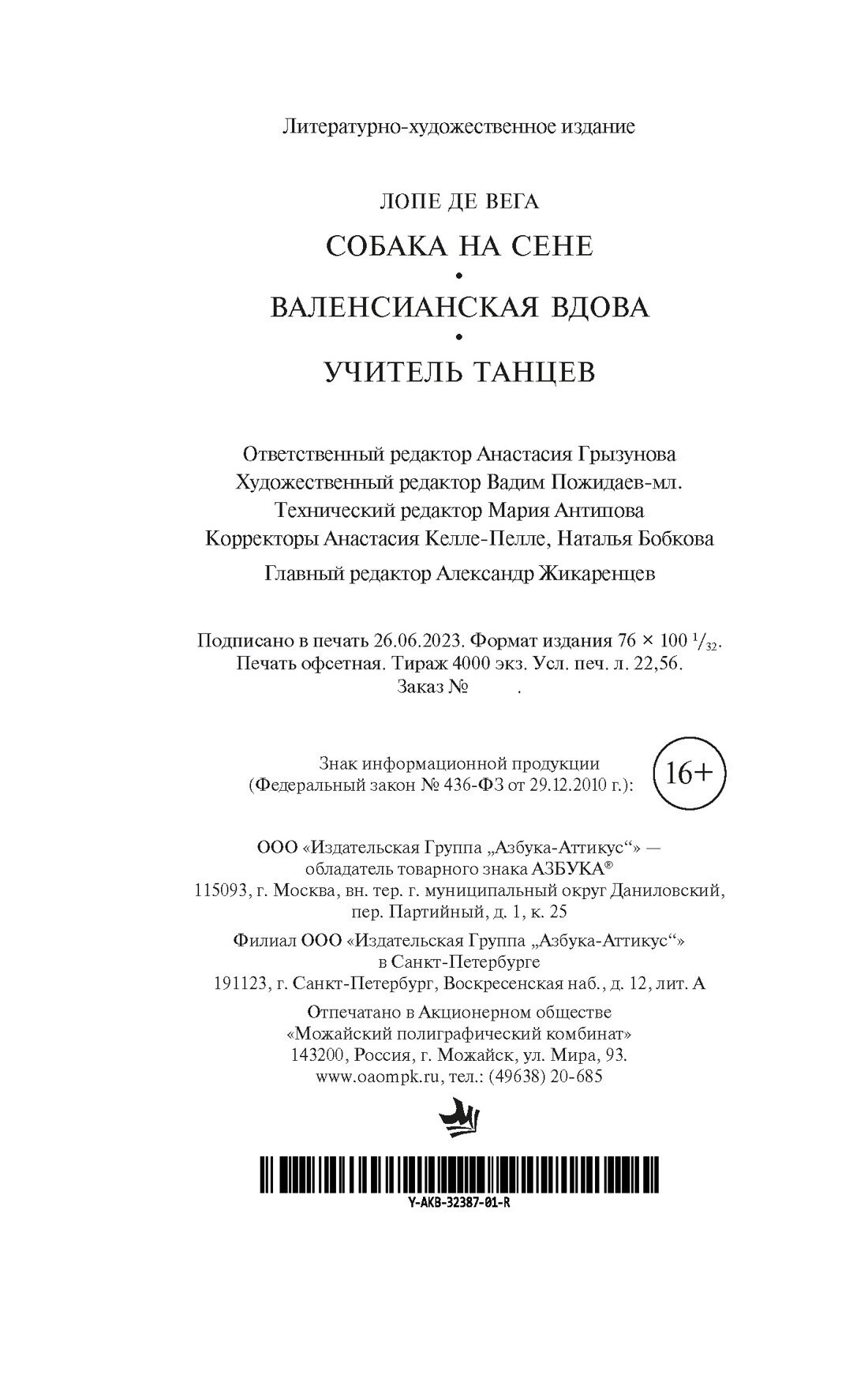 Собака на сене. Валенсианская вдова. Учитель танцев (де Вега Лопе Феликс Карпьо); Азбука, 2023