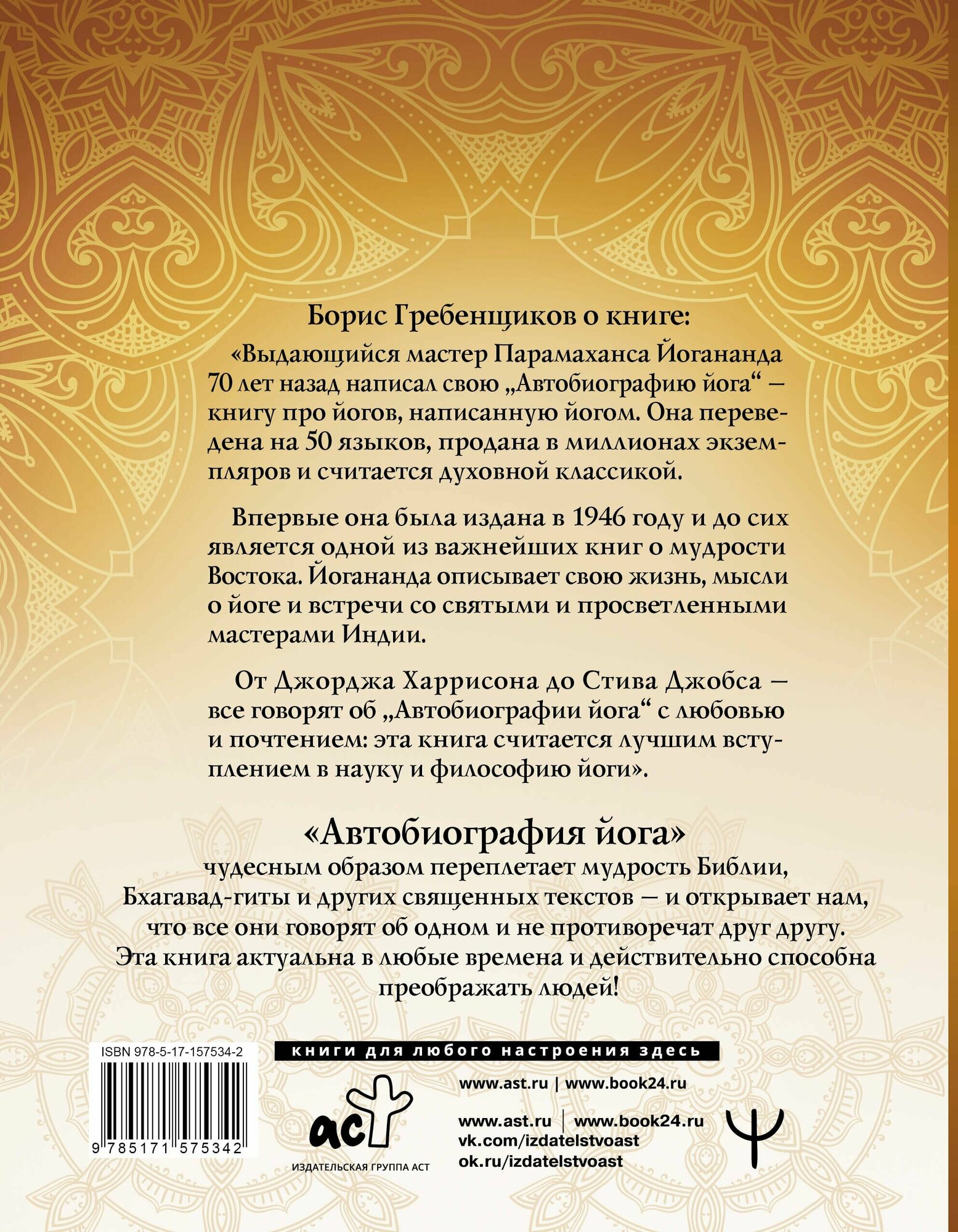 Перед вами книга, не нуждающаяся в представлении, — одна из самых легендарных книг о духовности и йоге XX века, проданная миллионными тиражами, среди ее ценителей — Стив Джобс, Джордж Харрисон, Элвис Пресли и многие другие. И самое главное — эта книга действительно способна преображать жизни людей!