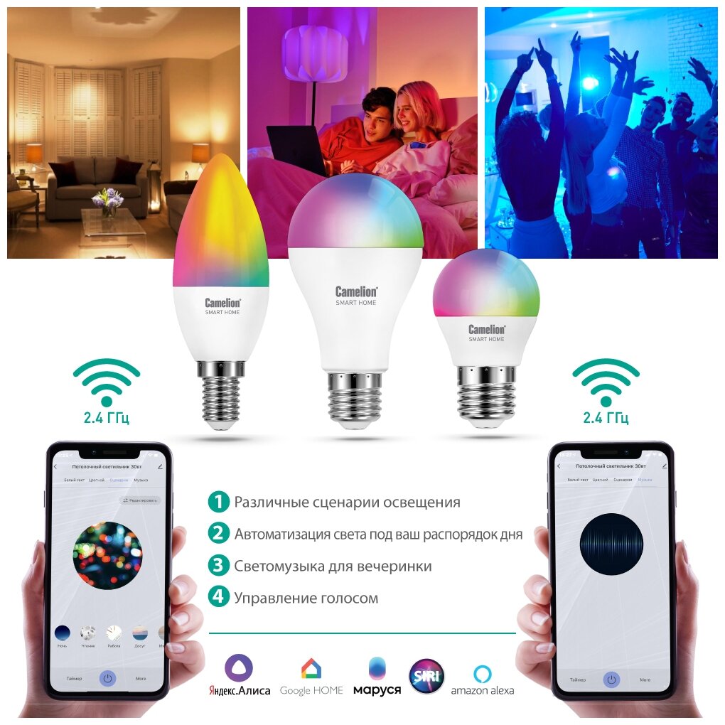 Умная лампа Camelion Smart Home светодиодная LSH11 A60 RGBСW Е27 WIFI Litarc Lighting&Electromic Ltd