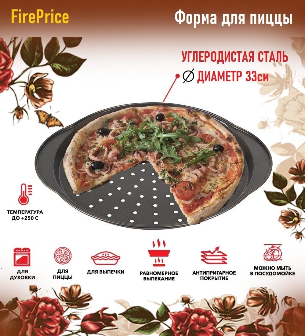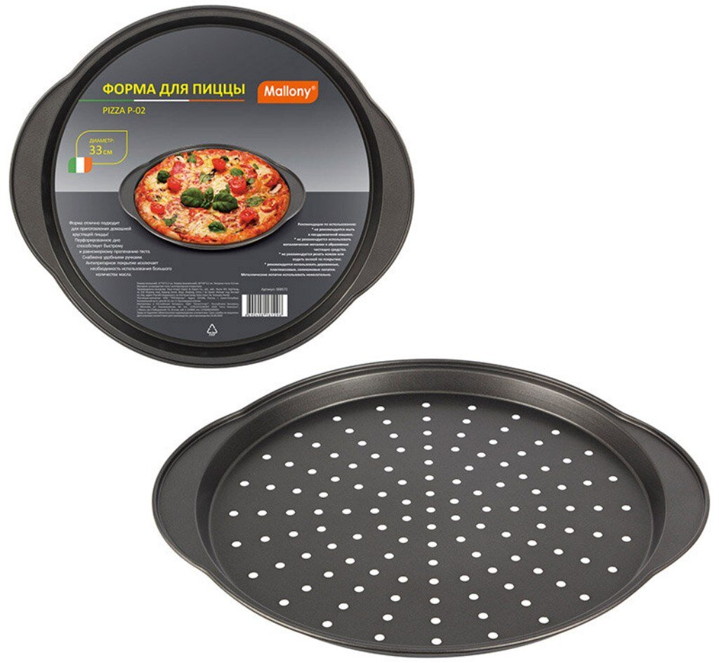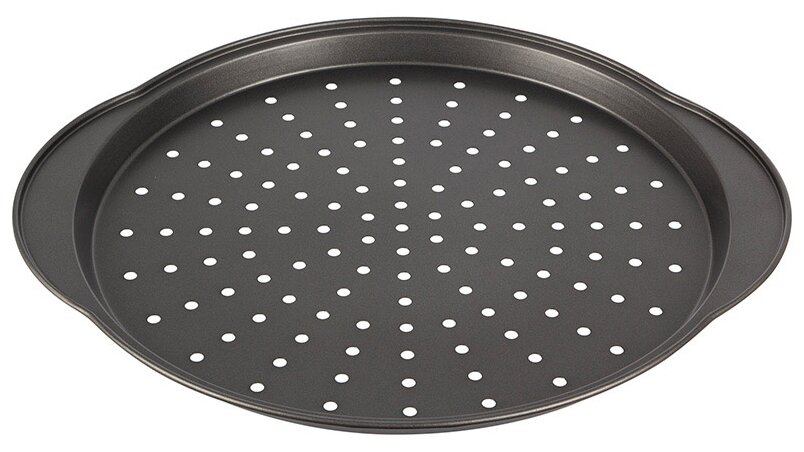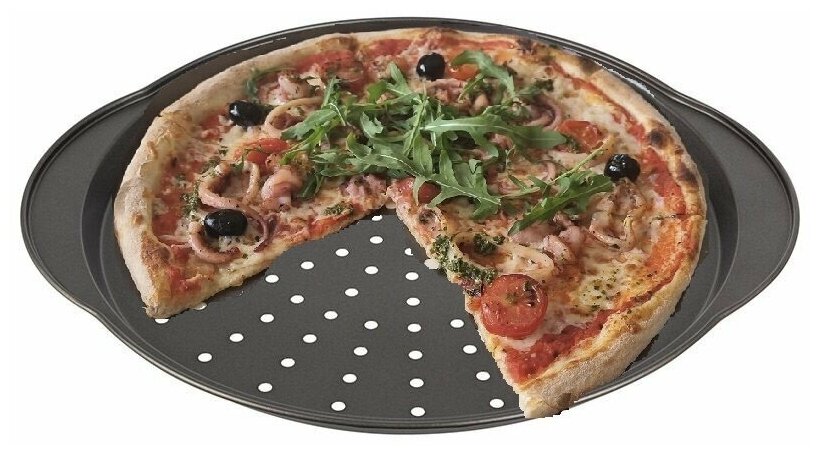 Перфорированное дно способствует более быстрому и равномерному пропекания теста. Готовая пицца без труда извлекается. Форма снабжена ручками для удобства. Её легко чистить. Антипригарное покрытие исключает необходимость использования большого количества масла. Проста и удобна в использовании. Не изменяет цвет и вкус пищи.