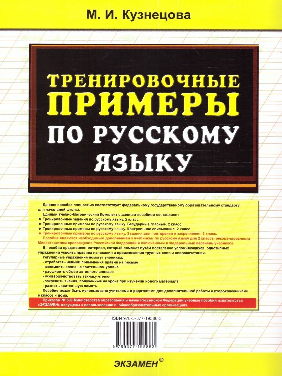 Тренировочные примеры по русскому языку. 2 класс. Задания для повторения и закрепления (Марта Ивановна Кузнецова); Экзамен, 2026