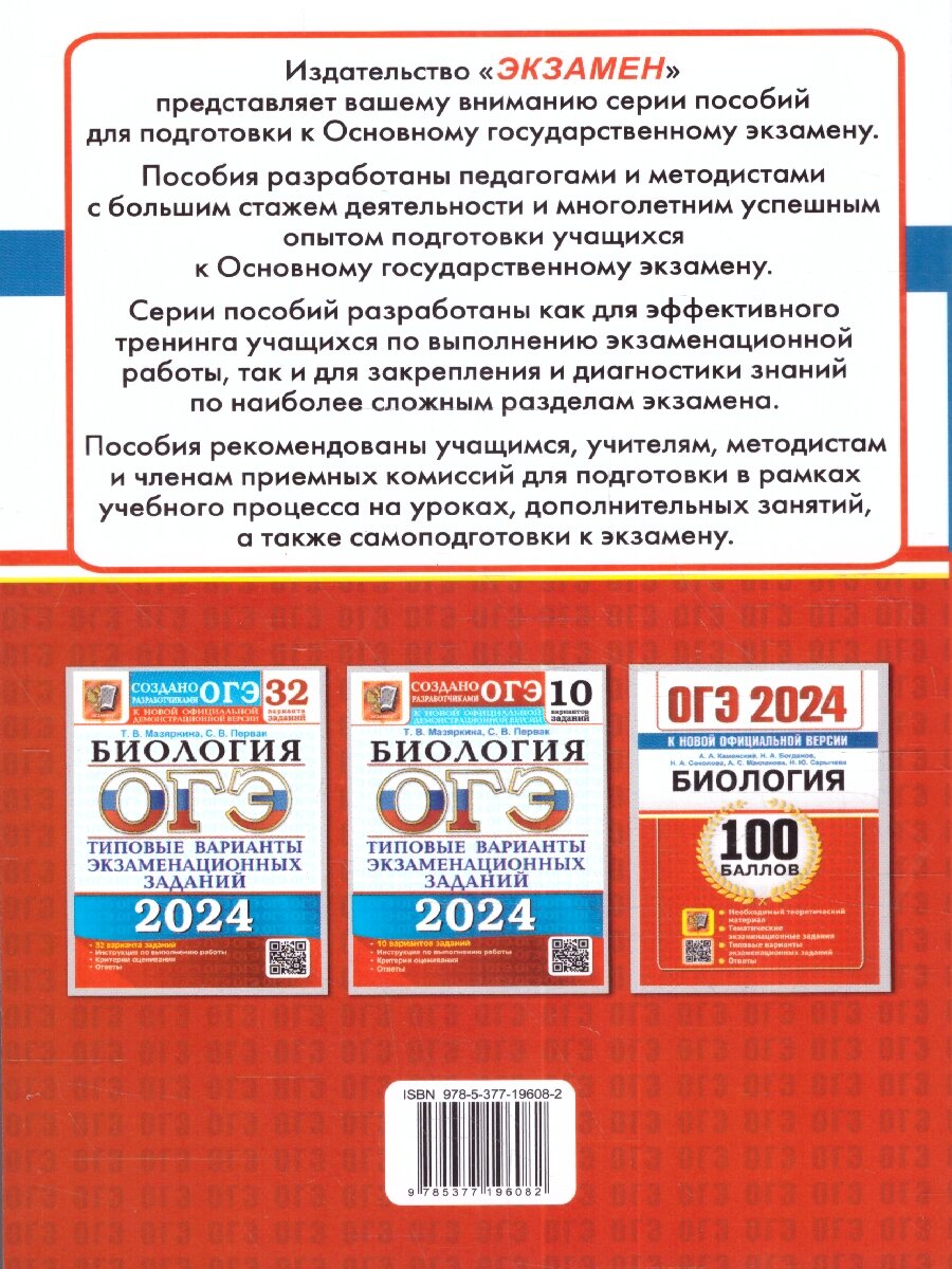 ОГЭ 2024. Биология. 100 баллов. Самостоятельная подготовка к ОГЭ (Каменский Андрей Александрович, Богданов Николай Александрович, Соколова Наталия Александровна); Экзамен, 2023