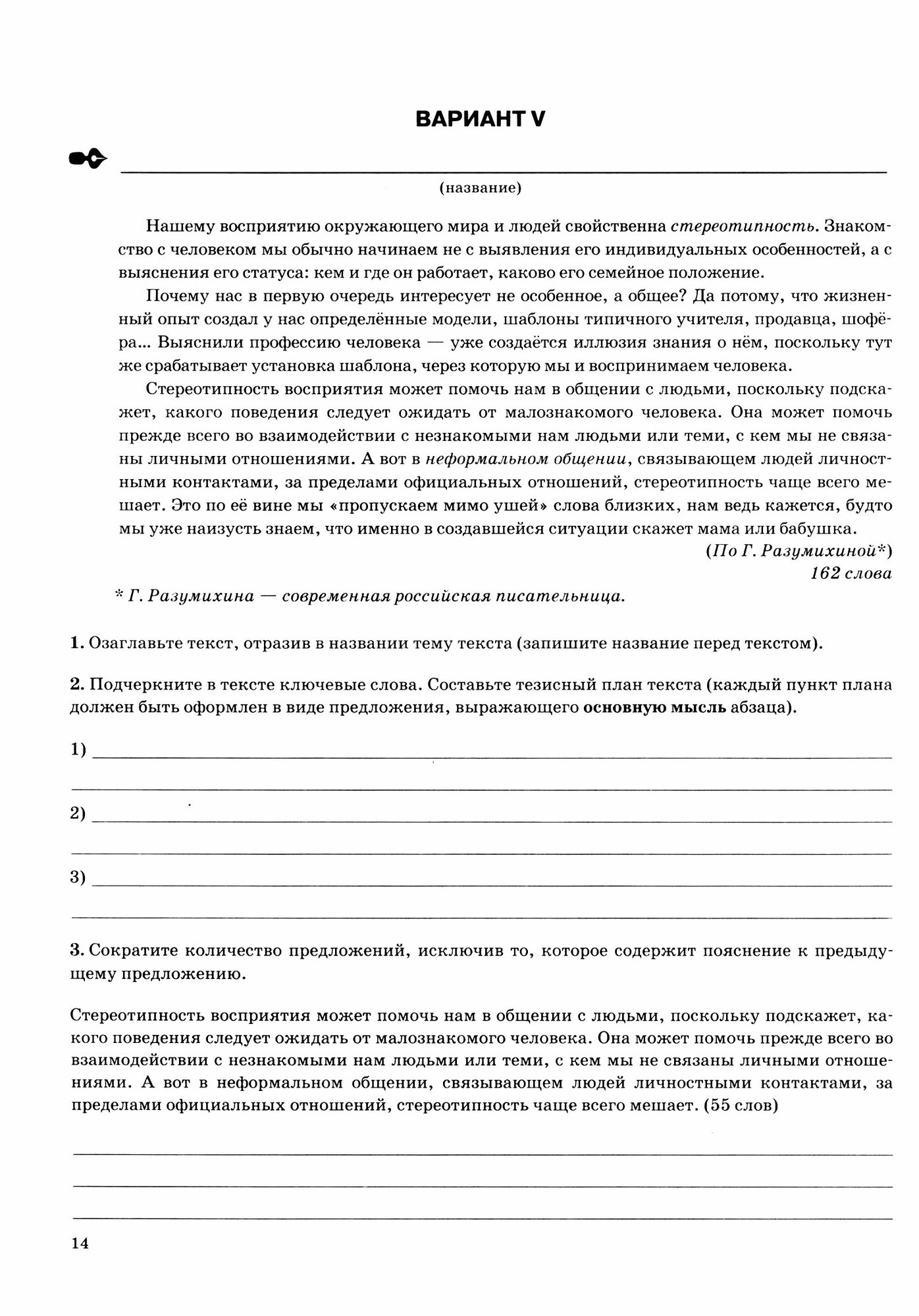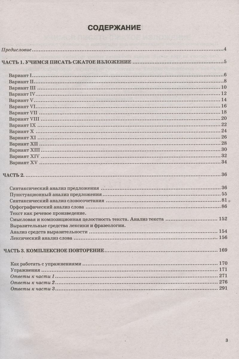 Оно состоит из трёх частей: первая посвящена такому трудному заданию, как написание сжатого изложения;