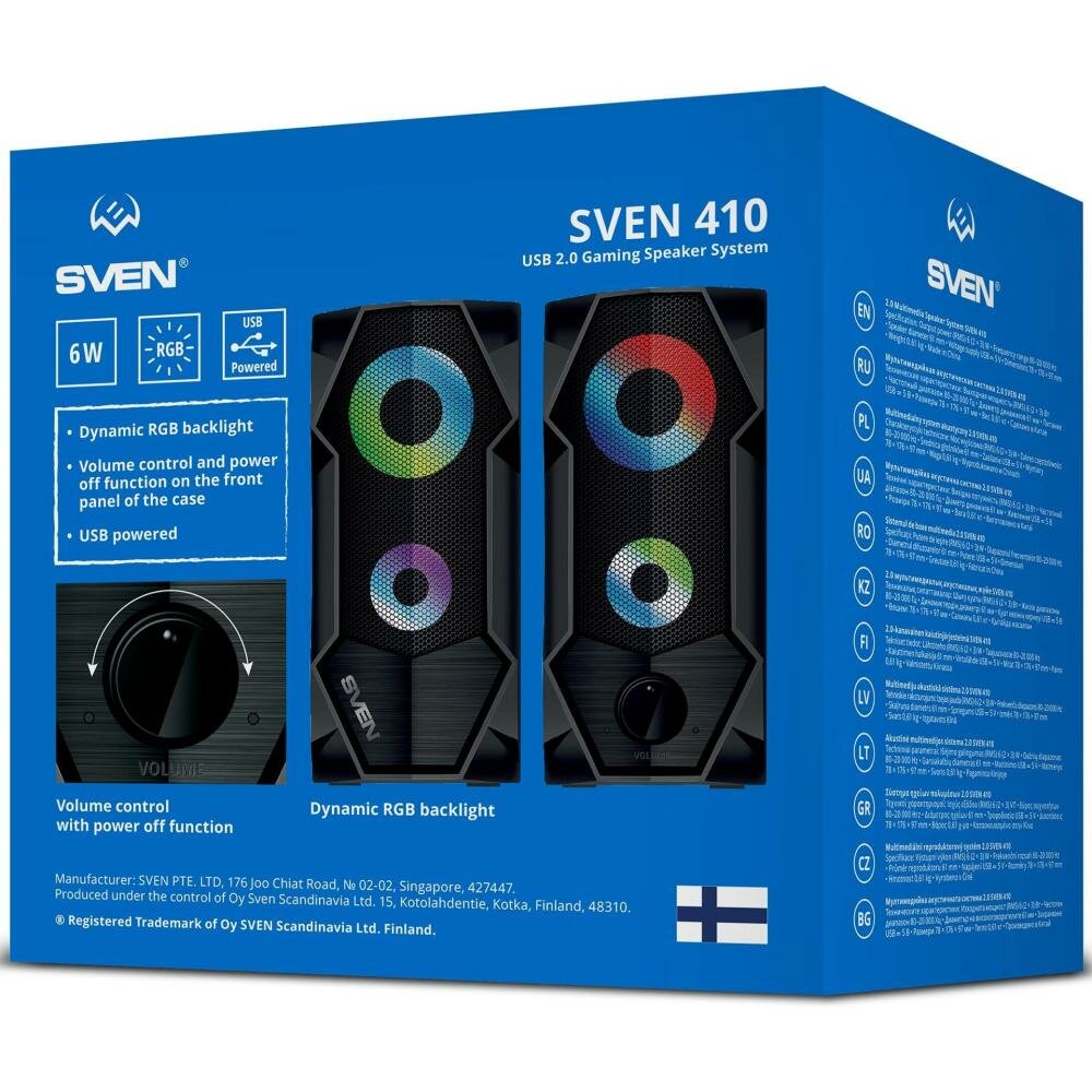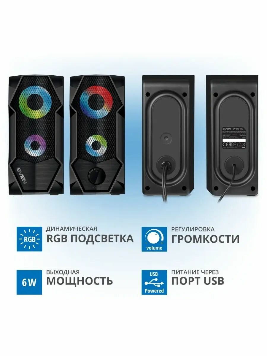 Колонки Sven 4210 2.0 чёрные (2x3W, USB, RGB подсветка)