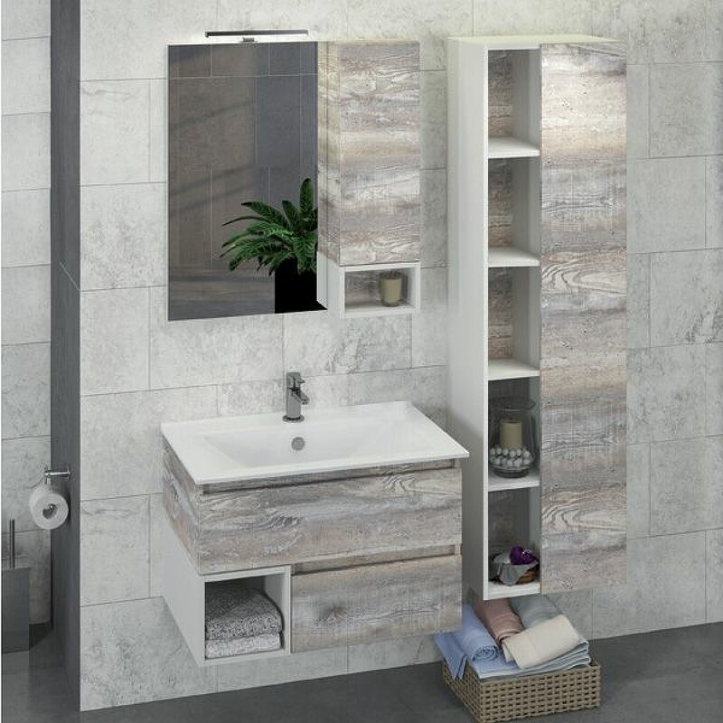 Тумба с раковиной Comforty Турин 75М 00-00013913 подвесная Дуб бежевый Белая глянцевая
