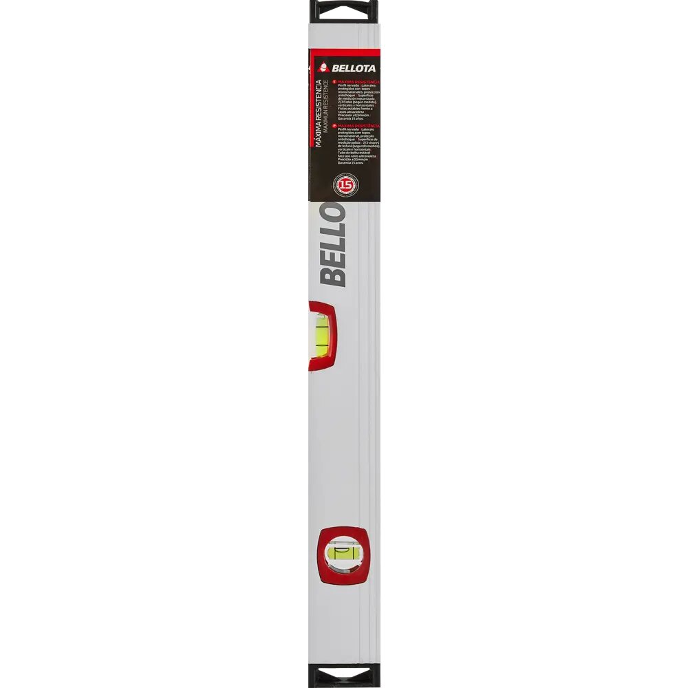 **Уровень пузырьковый Bellota 50101M-50** изготовлен в корпусе из легкого, но прочного алюминиевого сплава. Оснащен двумя пробирками — вертикальной и горизонтальной, устойчивых к механическим воздействиям и ультрафиолету. Контактные зоны тщательно обработаны для обеспечения большей точности измерения.