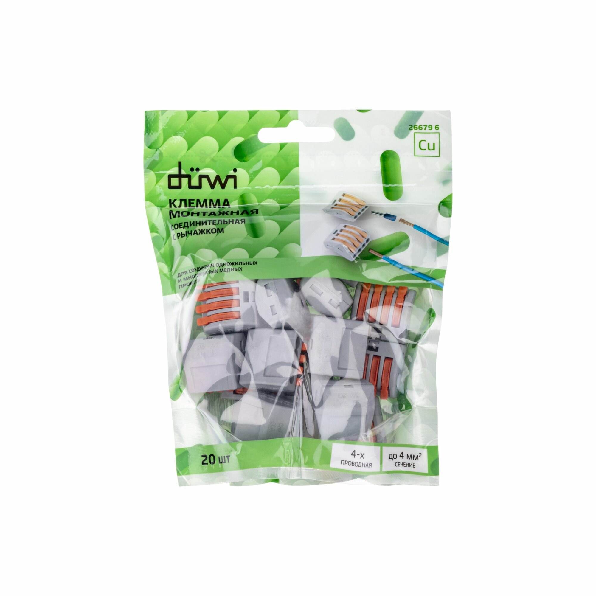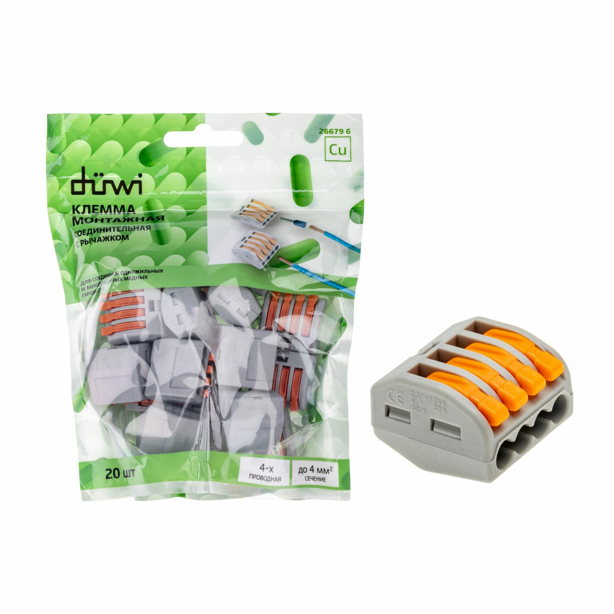 **Клеммы соединительные монтажные с рычажком 4-х контактные Duwi аналог WAGO/ВАГО. В наборе 20 шт.**