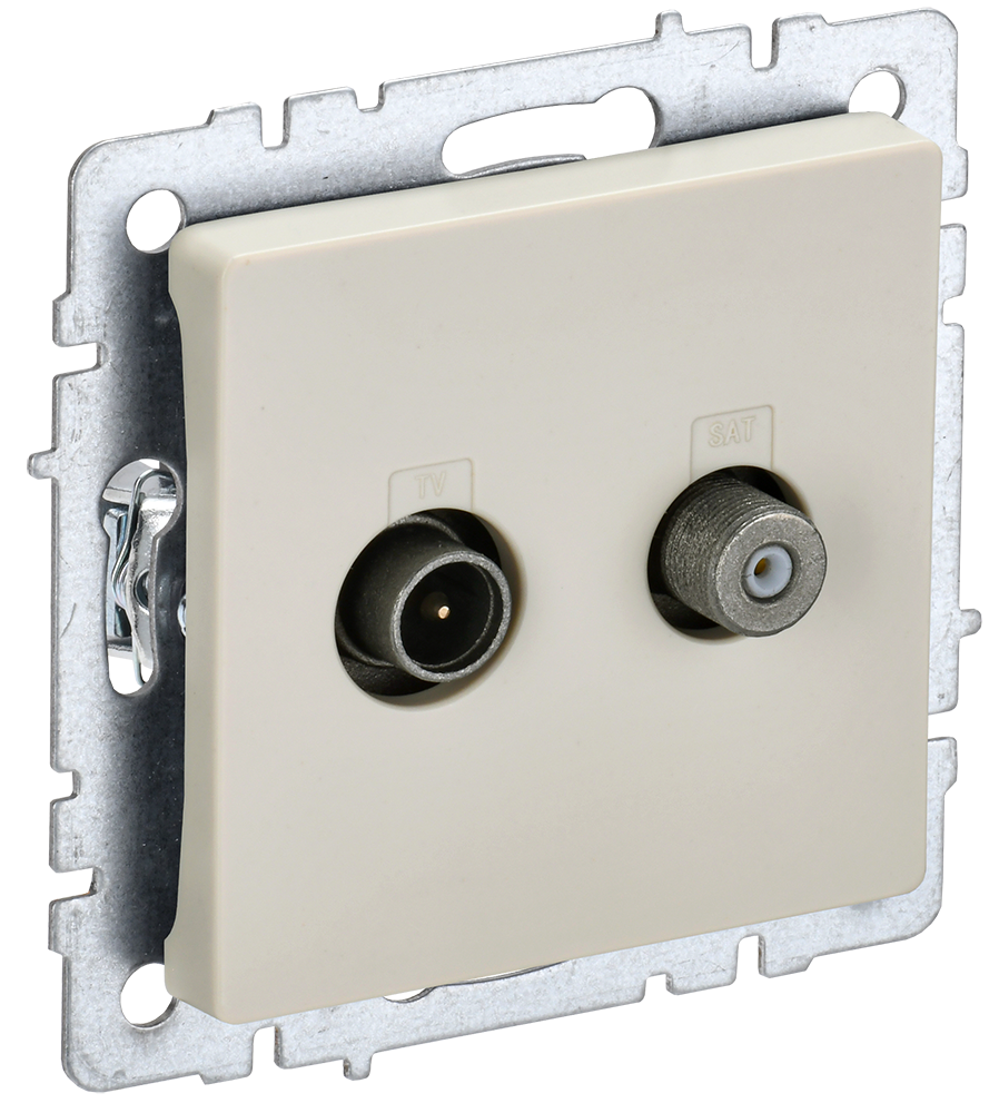 Розетка TV двойная встраиваемая IEK Brite РТВ/РСп12-БрКр SAT цвет бежевый