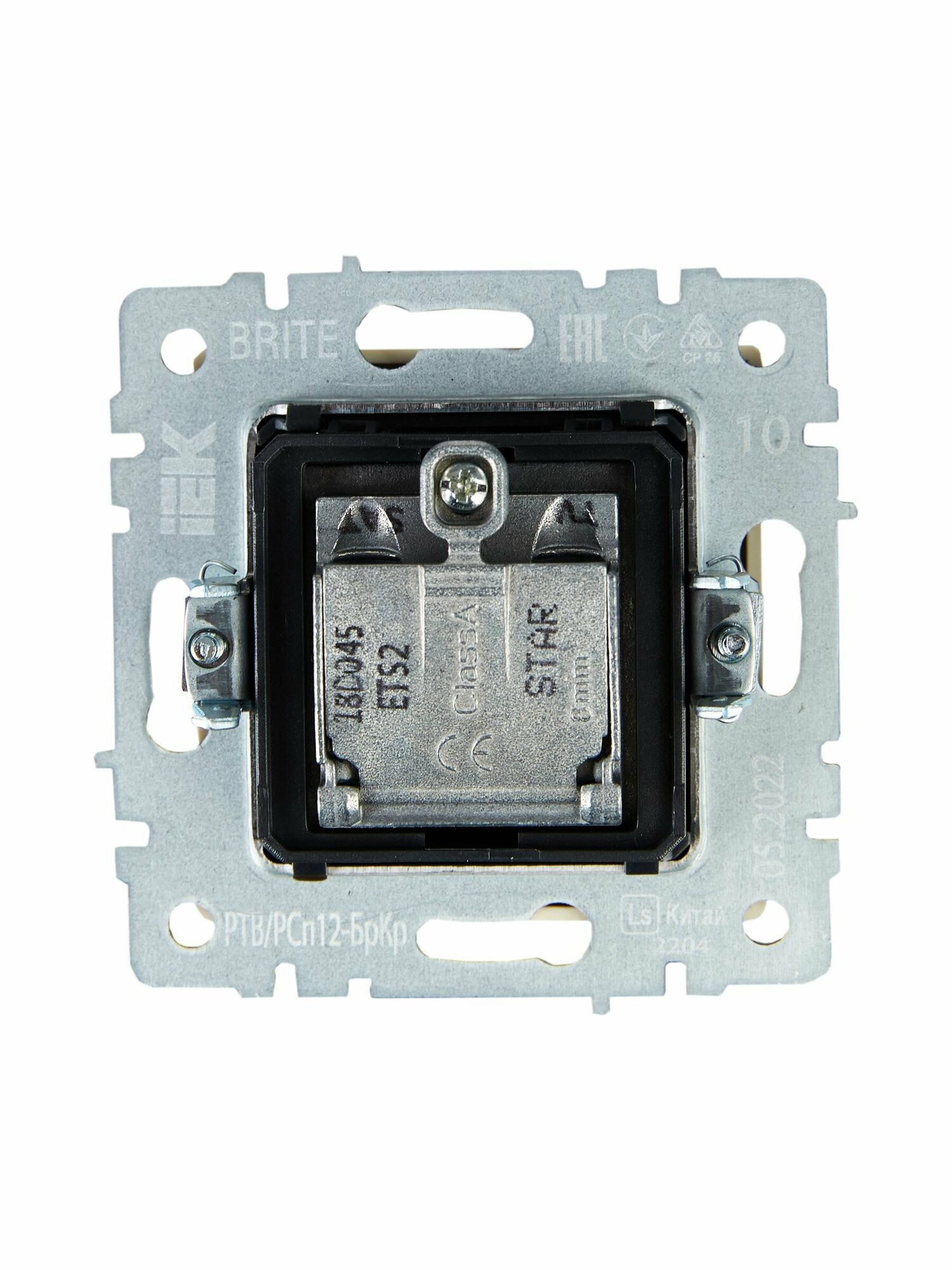 **Розетка TV IEK Brite РТВ/РСп12-БрКр SAT** предназначена для скрытого монтажа. Используется для подключения телевизора к кабельной, спутниковой радиосети при помощи коаксиального кабеля. Благодаря встраиваемому типу монтажа можно аккуратно и органично вписать розетку практически в любой интерьер помещения. Основной материал – пластик, обладает высокой прочностью, а также устойчивостью к выгоранию и воздействию влаги.
