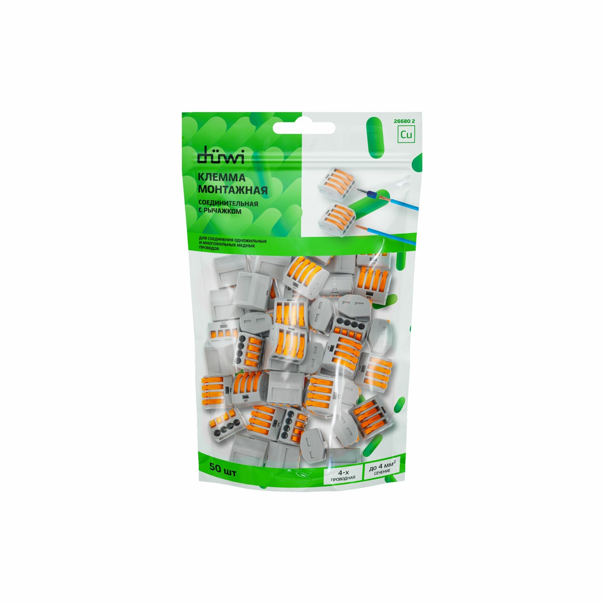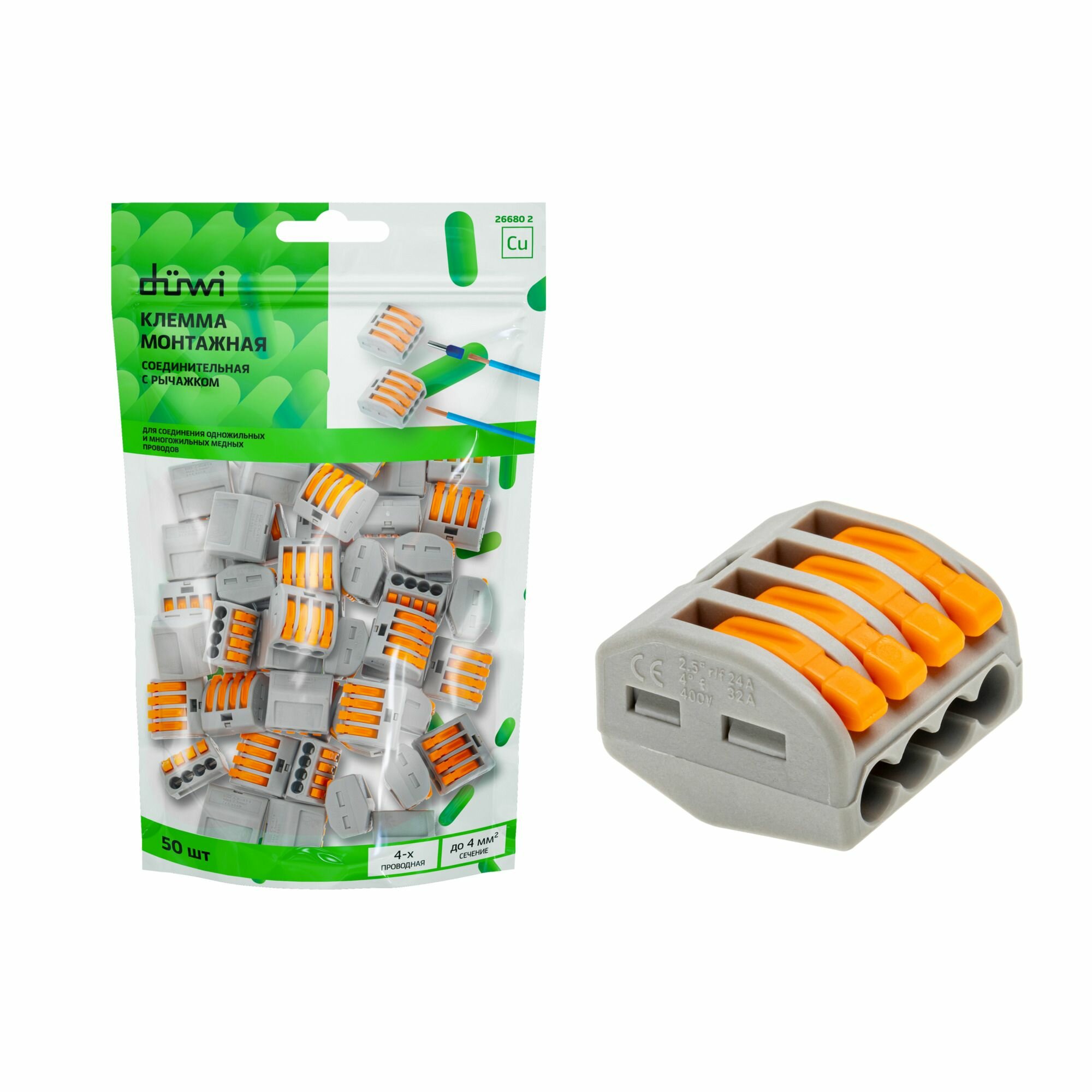 **Клеммы соединительные монтажные с рычажком 4-х контактные Duwi аналог WAGO/ВАГО. В наборе 50 шт.**
