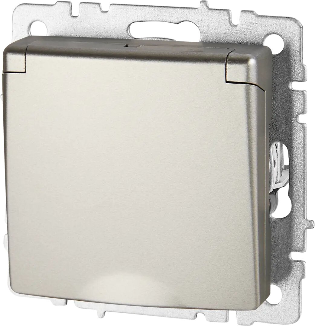 Розетка встраиваемая IEK Brite РСбш10-3-БрС с заземлением с крышкой и шторками цвет сталь