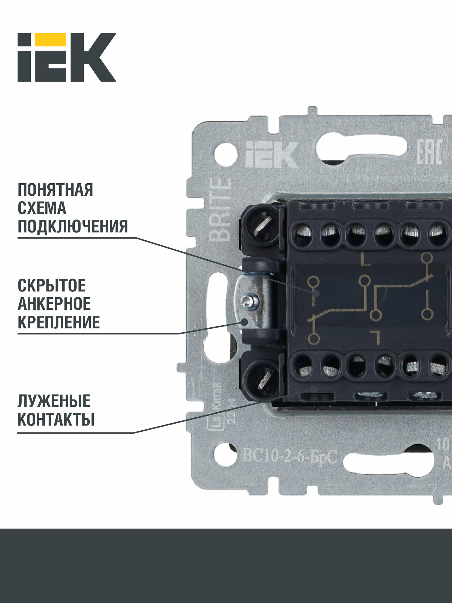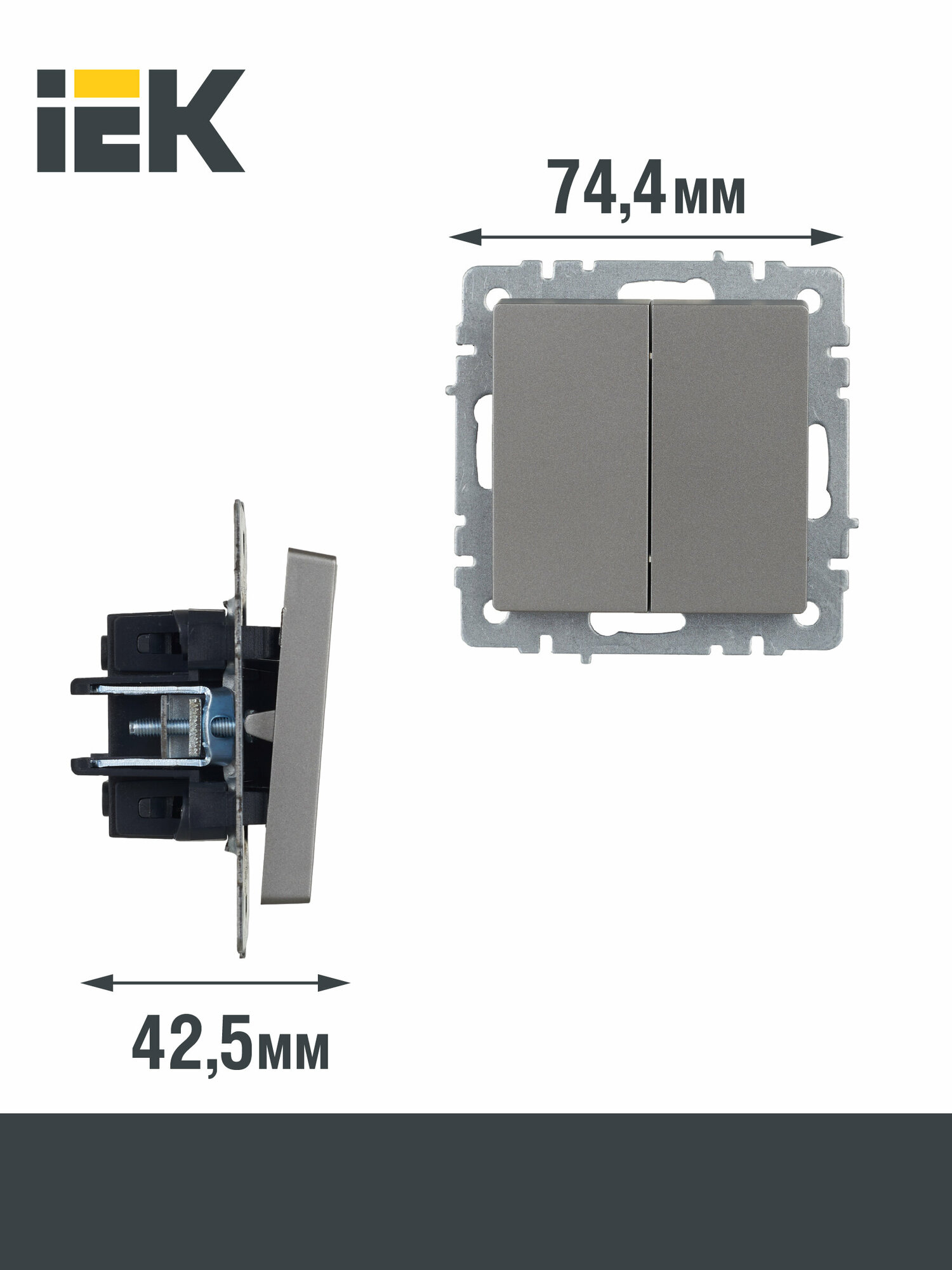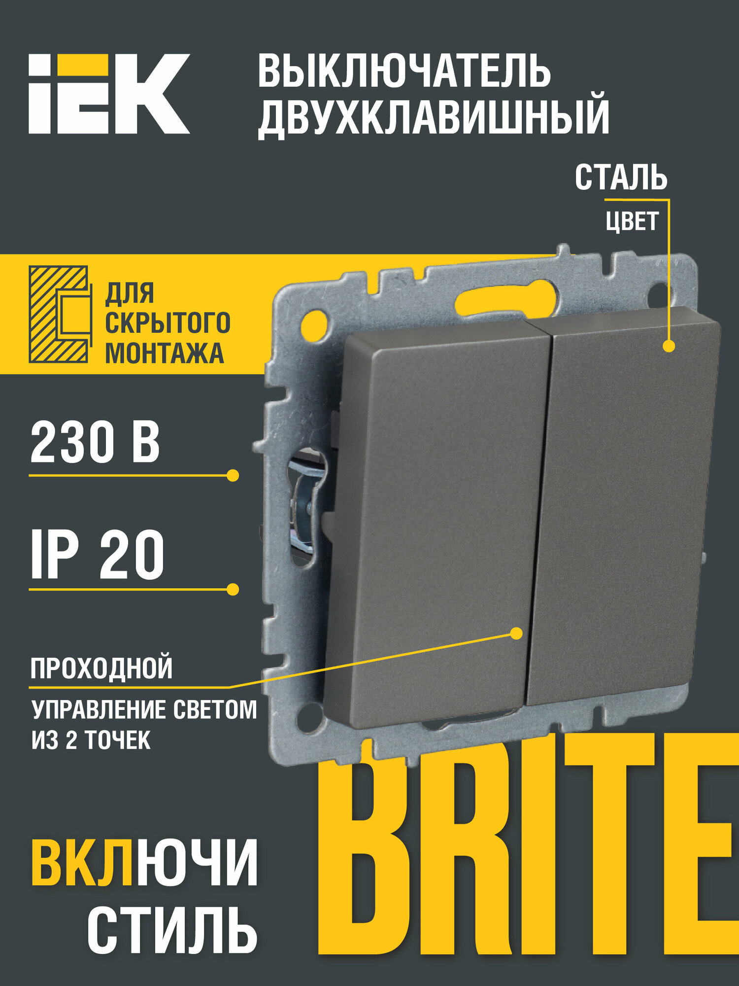 Выключатель проходной встраиваемый IEK Brite 2 клавиши цвет сталь