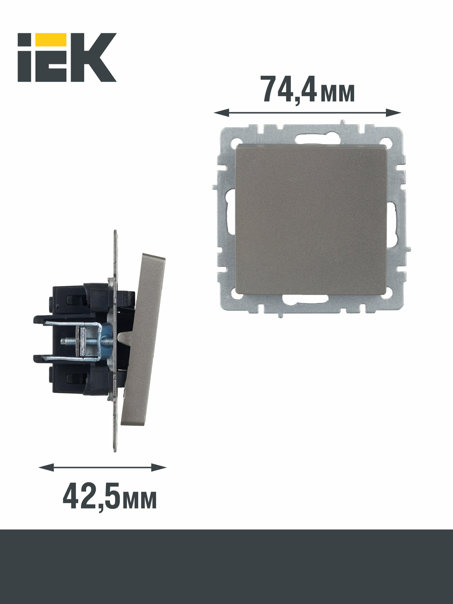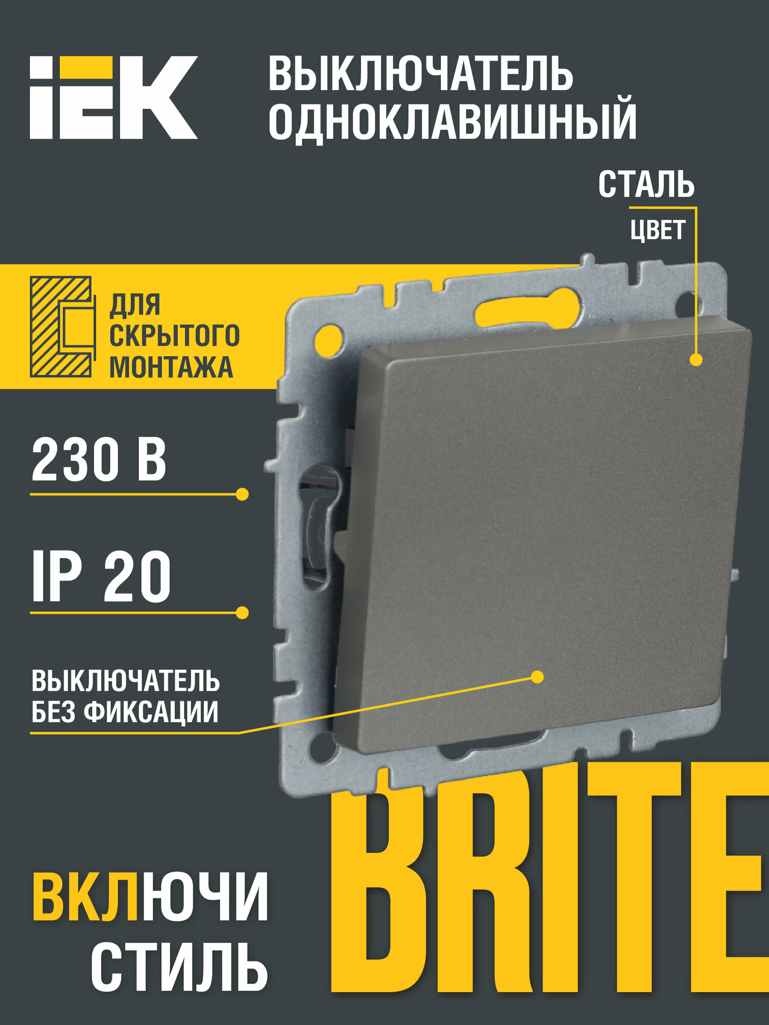 Выключатель встраиваемый самовозвратный IEK Brite 1 клавиша цвет сталь
