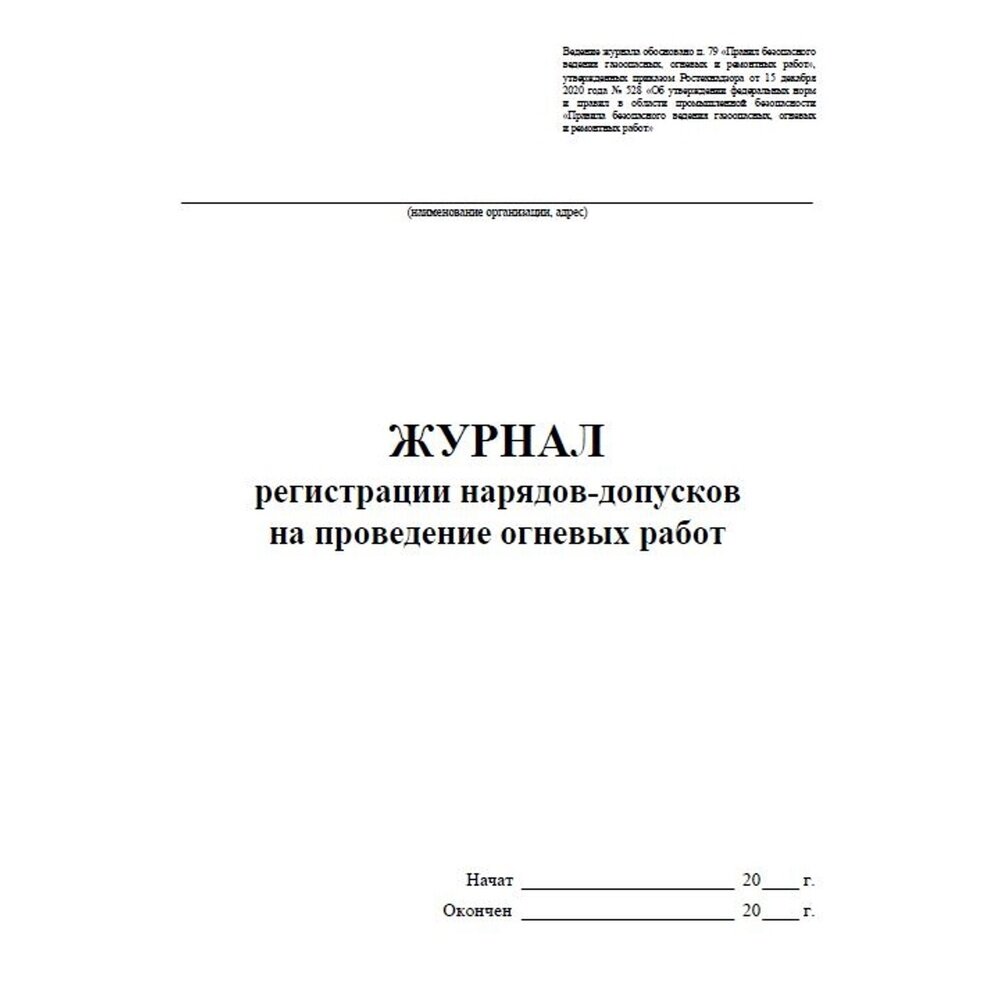 Журнал регистрации нарядов-допусков на проведение огневых работ (ведение журнала регламентировано Приказом Ростех-надзора от 15 декабря 2020 г. №528).