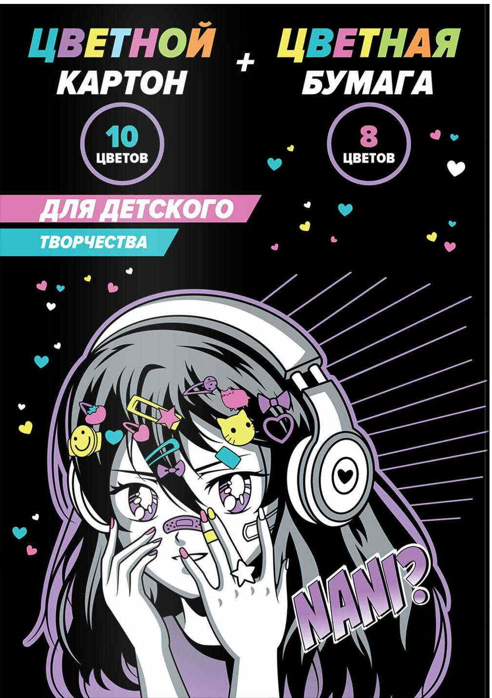 Набор цветного картона и цветной бумаги Манга 26 листов Феникс+