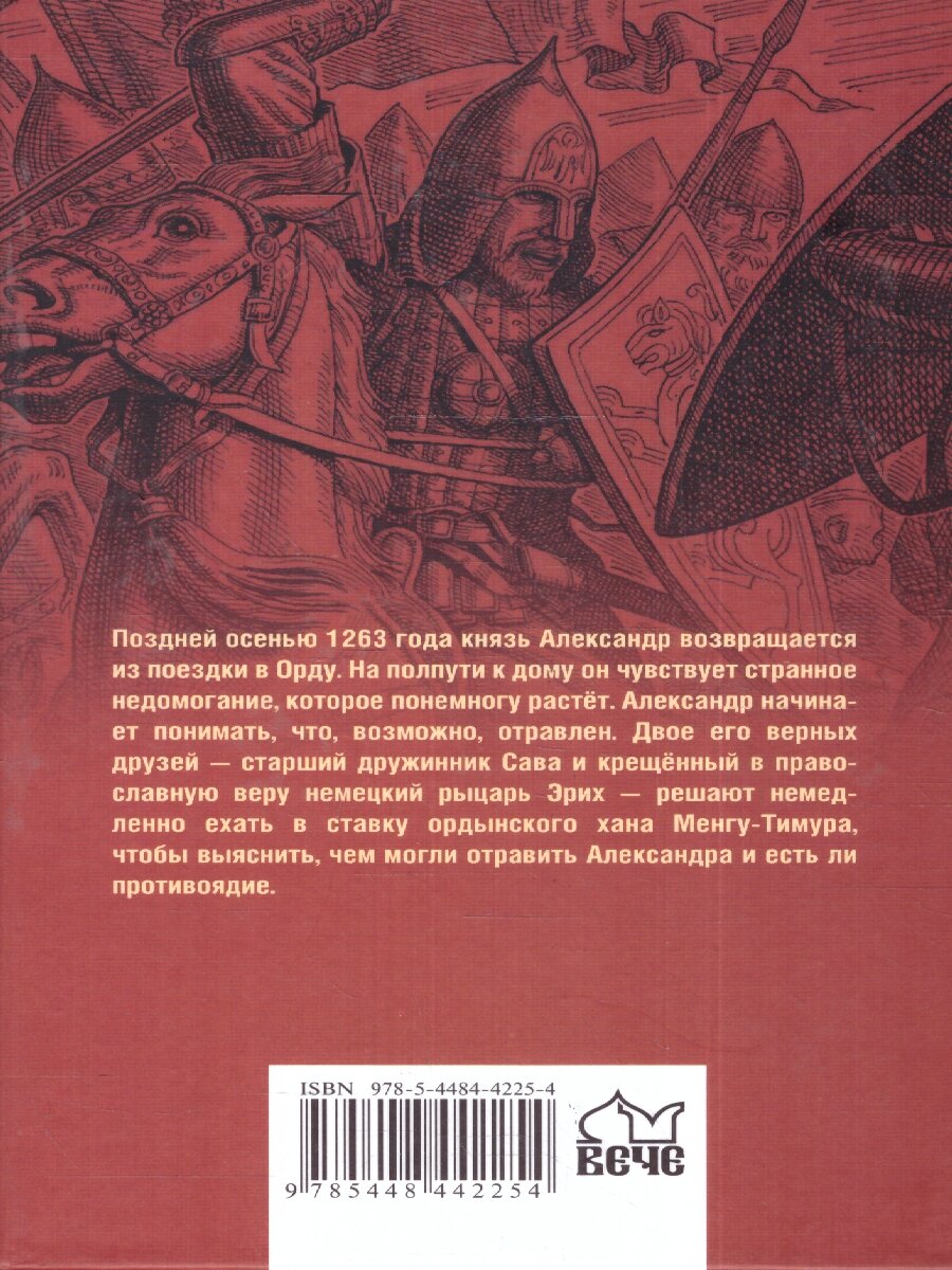 Двое его верных друзей - старший дружинник Сава и крещёный в православную веру немецкий рыцарь Эрих - решают немедленно ехать в ставку ордынского хана Менгу-Тимура, чтобы выяснить, чем могли отравить Александра, и есть ли противоядие.
