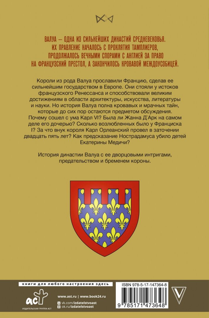 Валуа - одна из сильнейших династий Средневековья. Их правление началось с проклятия тамплиеров, продолжалось вечными спорами с Англией за право на французский престол, а закончилось кровавой междоусобицей. Короли из рода Валуа прославили Францию, сделав ее сильнейшим государством в Европе. Они стояли у истоков французского Ренессанса и способствовали великим достижениям в области архитектуры, искусства, литературы и науки. Но история Валуа полна кровавых и мрачных тайн, которые до сих пор остаются предметом обсуждения.