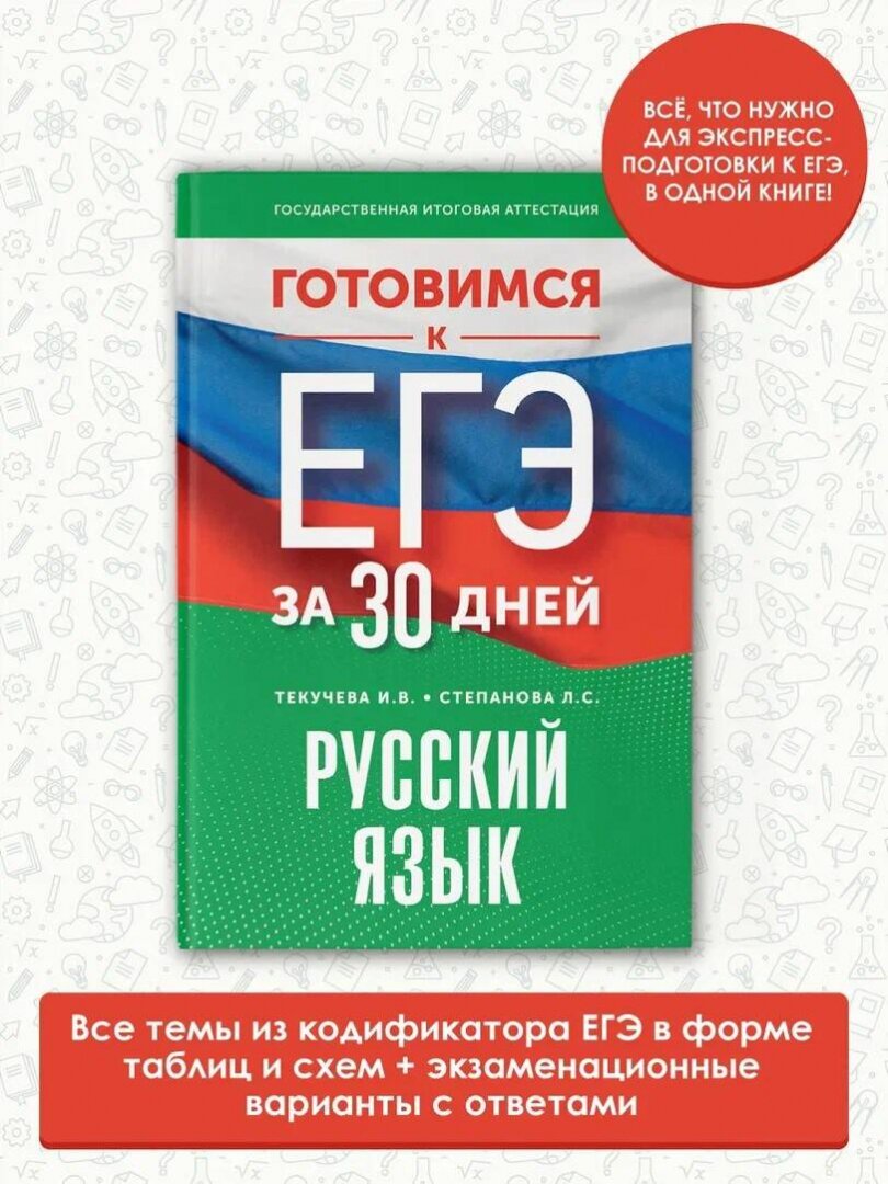 На сегодняшний день товар «Книга: Готовимся к ЕГЭ за 30 дней. Русский язык (Людмила Сергеевна Степанова, Ирина Викторовна Текучева); АСТ, 2023» можно купить с кешбеком в 5 магазинах: book24, ЛитРес, Буквоед, Читай-город, Яндекс.Маркет