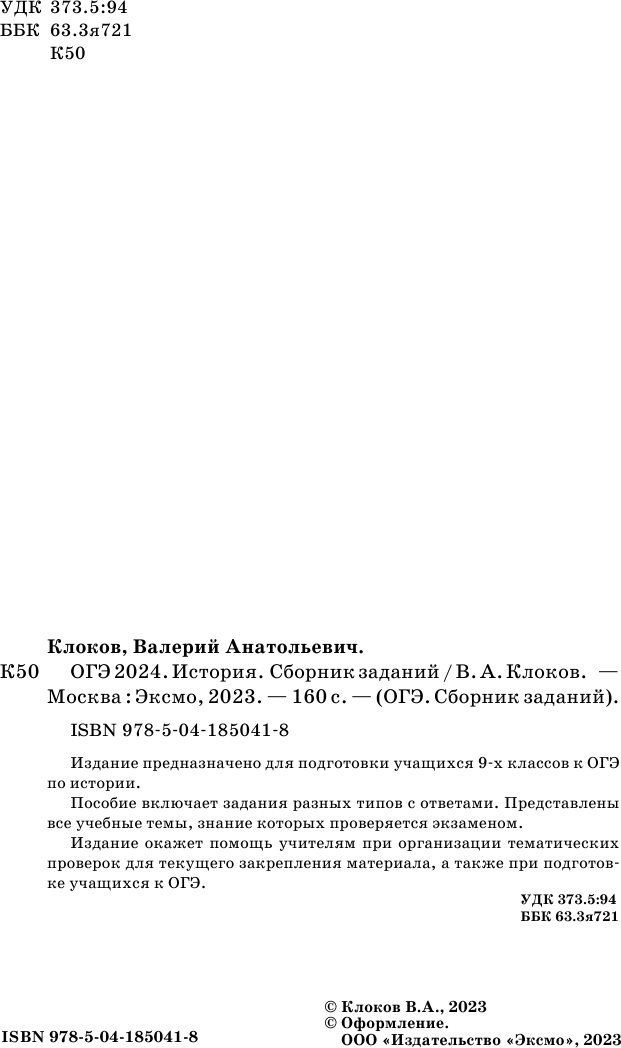 ОГЭ-2024. История. Сборник заданий (Клоков Валерий Анатольевич); ООО "Издательство "Эксмо", 2023