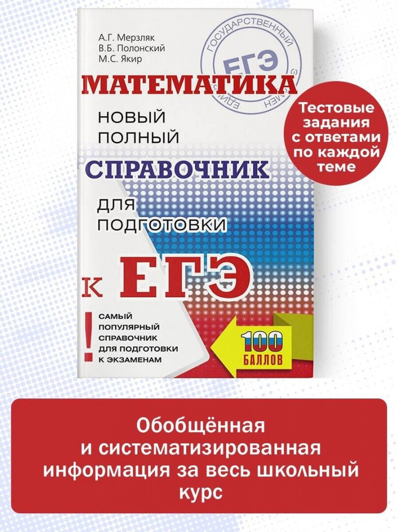 На сегодняшний день товар «Книга: ЕГЭ. Математика. Новый полный справочник для подготовки к ЕГЭ (Виталий Борисович Полонский, Михаил Семенович Якир, Аркадий Григорьевич Мерзляк); АСТ, 2023» можно купить с кешбеком в 4 магазинах: book24, Буквоед, Читай-город, Яндекс.Маркет