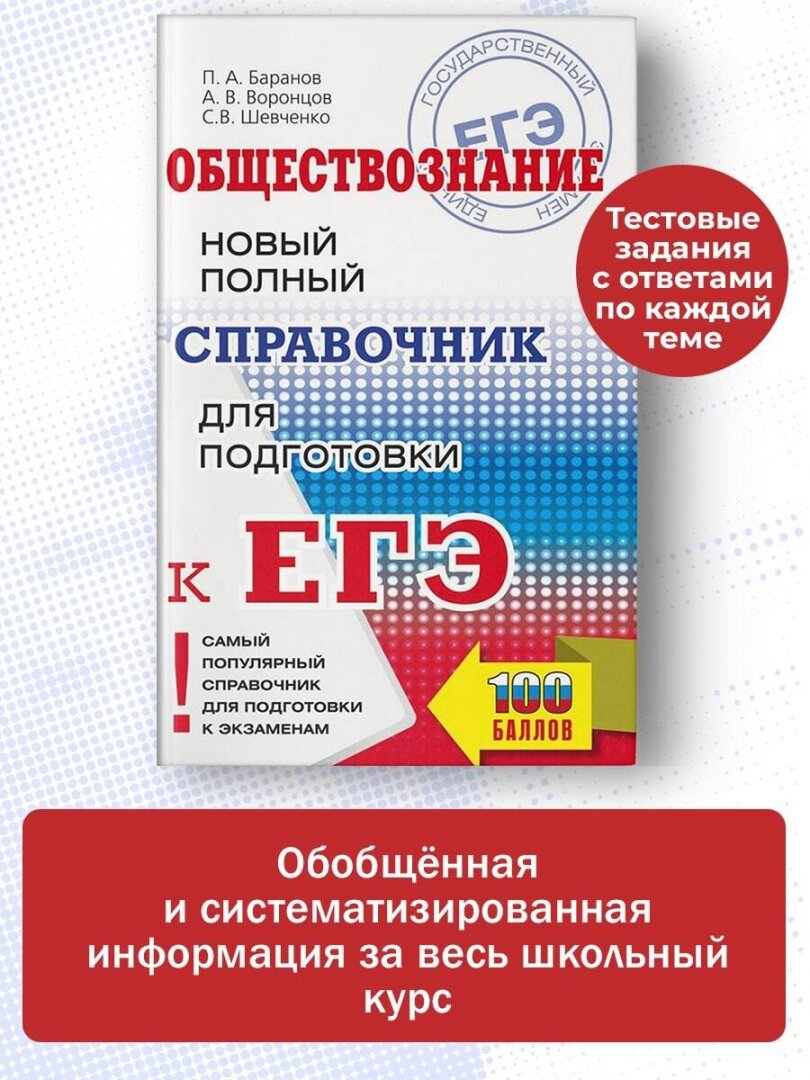 ЕГЭ. Обществознание. Новый полный справочник для подготовки к ЕГЭ (Сергей Владимирович Шевченко, Пётр Анатольевич Баранов, Александр Викторович Воронцов); АСТ, 2024